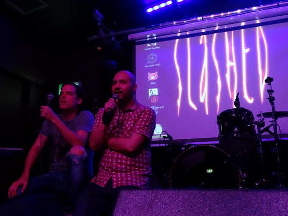 Following the first set was special presentation and Q&A regarding footage from the unfinished horror/slasher film “Slashed”, by Jed and Mark. This uncompleted film has become infamous in many circles for a variety of reasons. As a Coldplay fan myself, the fact that Chris Martin and Jonny Buckland played roles in this movie was of interest, so it was fun to see not just those scenes but all of the scenes, in this clever and self-aware film. Jed also gave permission to film it, so some (not all) of the clips may be made available to view if Jed says it is okay…