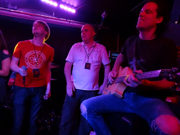 As one who bought the VIP tickets, we received a lot of extras… a goodie bag with a t-shirt and EP, as well as early entry into the venue. The Relentless Garage is two stories, so all of the exclusive stuff was done upstairs, starting at around 3:00 PM. I went with two friends, and somehow we ended up directly in front of the stage for the first of the three sets – their “Rarities” set. Now, if you can imagine this… the stage was only about one foot off the ground, and the band standing literally in front of us. I was half expecting to accidentally getting hit in the head with a mic stand or guitar. It was basically akin to a private concert for a handful of people (by my estimate, less than 100). The “Rarities” set ended up being the band’s first “mini album”, Trailer.