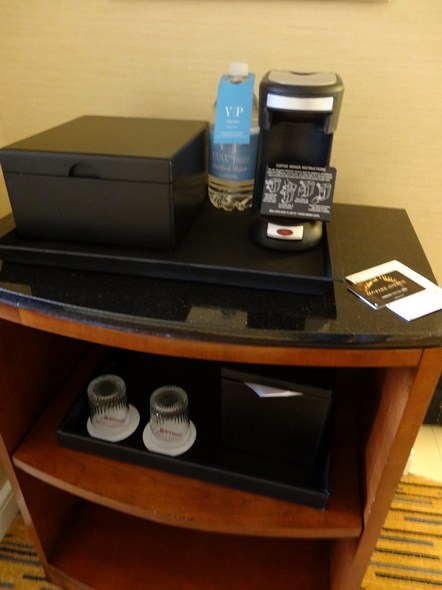 The hotel offers both wired and wireless Internet. There was no in-room refrigerator, but there was a coffee maker and safe.