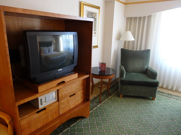I travel quite extensively, and this was the first time I’ve seen a tube television for as long as I can remember. Obviously, the hotel needs refurbishing across the board, since putting in contemporary HDTV LCD/LED televisions would costless than a few hundred dollars a room (which could be recouped with one night’s guest stay at the rates they are charging).