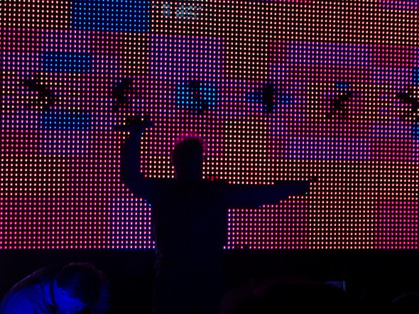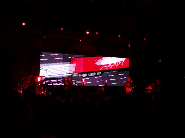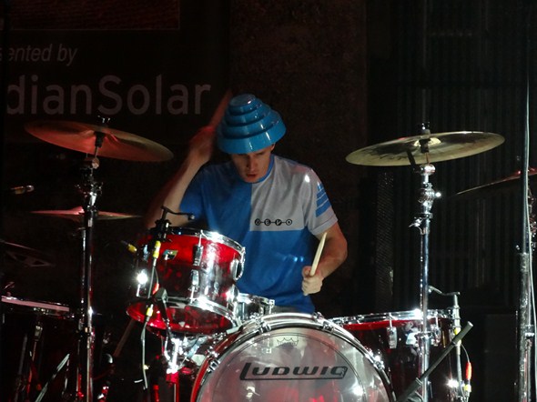 Tonight’s performance was more about potential than execution. As an overview, their live show reminds me of performance art – there is a significant visual element to the production, with a large screen in back projecting frenetic images (there was even an epilepsy warning posted as we entered the venue). Wardrobe, too, is a key component to the identity of this band, and their on stage personas were enhanced with masks, and later, those famous hats. Fun stuff.