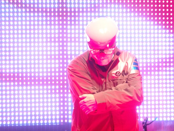 The coolest moment for me was during “Whip It”, when Mark threw some of the energy dome hats into the audience, and one was caught by this guy near the end of my row, and I got the sense he was the biggest Devo fan in the place – he was wearing a kilt and a Devo shirt and was dancing and singing along to all of the words the entire time. It was as if the energy dome was meant to land in his hands.