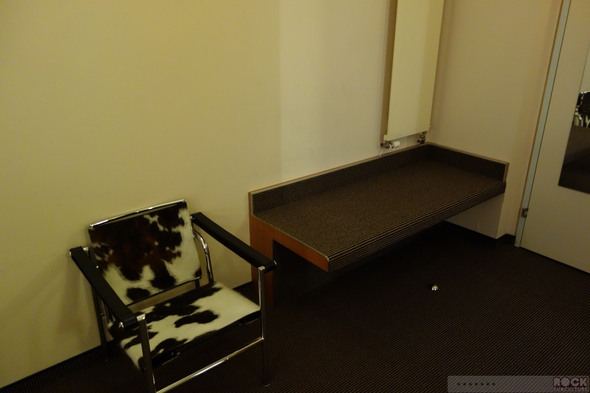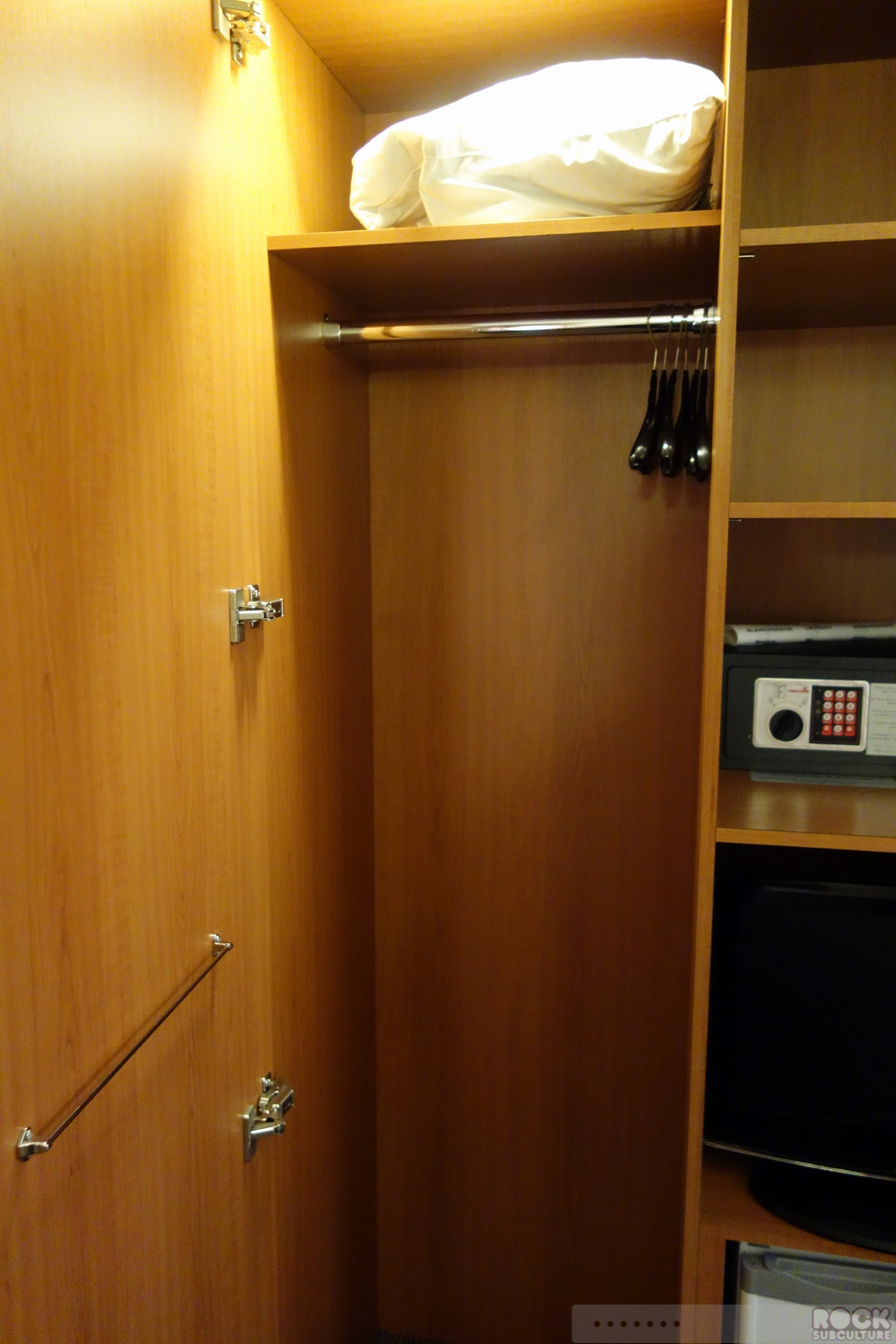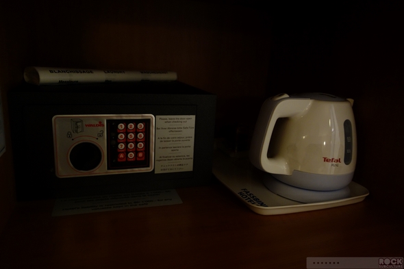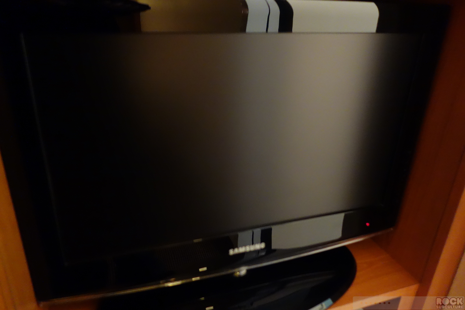 There was a small TV, a small (partially stocked for a fee) refrigerator, a small electronic safe, and a closet. There was also a bench and a chair by the door, as well as a small desk and chair by the window.