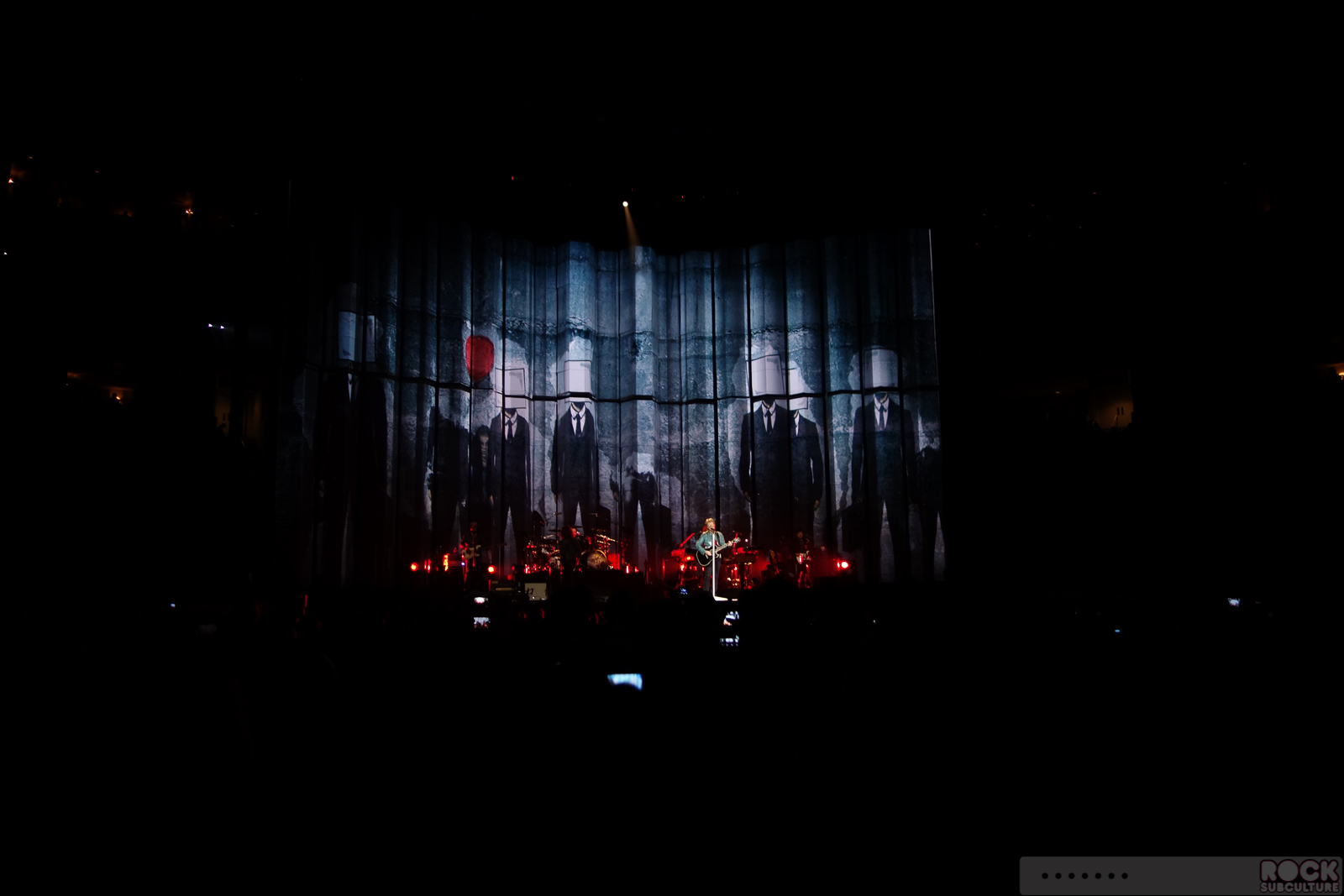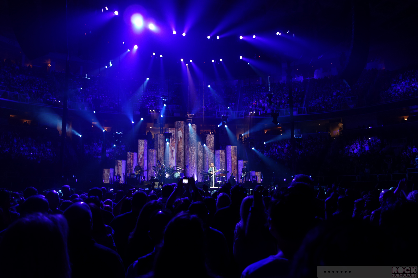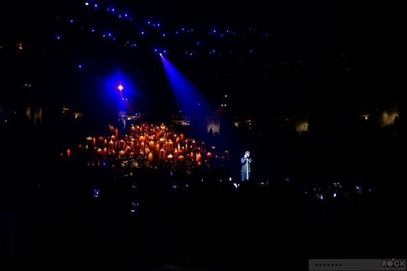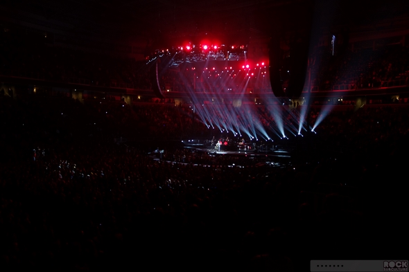A new trend in concert going at these huge venues… I’ve found more and more that your row number doesn’t really mean anything. So what you think you get – where you think you are – doesn’t always materialize in the real world, when you show up at the venue and see how things are ultimately configured. This is one of those shows sold so far in advance, at the time of the original ticket sales, an accurate seating chart did not exist. In my case, “Row 18” didn’t mean that there were 17 rows of people in front of me, as these larger tours, more and more, are coming up with creative configurations up in front of the stage to capitalize on the increasingly (in my opinion) outrageously priced packages… you have to pay big dollars to get anywhere near the stage; to be able to look the artist in the eye. So I have no idea exactly how many actual rows I was from center stage, but it was much more than 18, and my closest images below are with the aid of a 500mm equivalent zoom on a pocket camera.