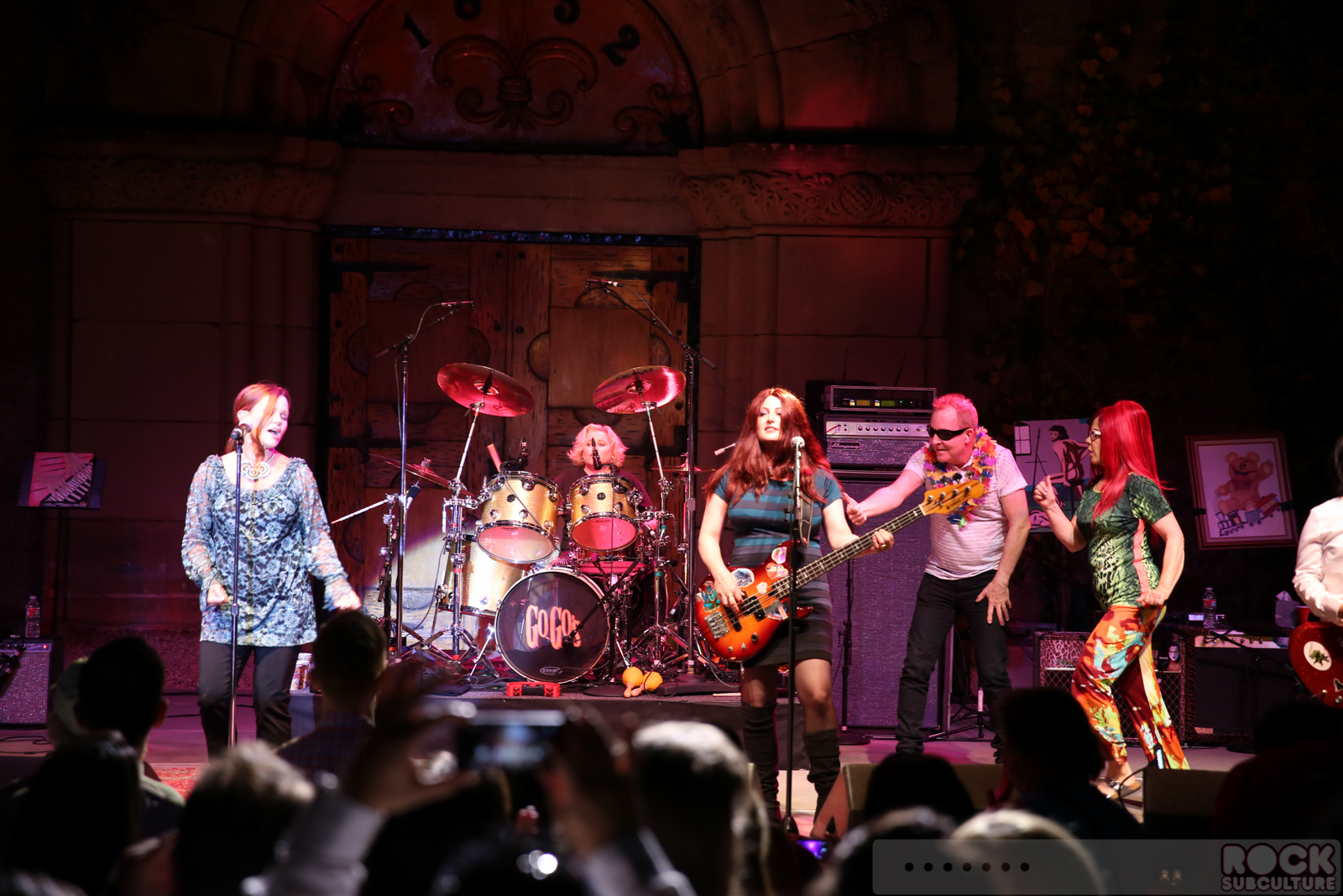 “Hey Gina, did you play your brother’s 78s?” The Go-Go’s bass player Jane Wiedlin giving their drummer a hard time as Gina tried to give a preface to their stellar cover of the Rolling Stone’s hit “Paint it Black” by talking about how when you were a kid you would borrow your older brother or sister’s “records or CDs or whatever“. Like co-headliner The B-52s, both bands brought a combination of rock and good fun on stage at Mountain Winery in Saratoga last night, and even shared the stage for one song, contributing to the intimate, party-like atmosphere. I’ve seen both bands in the past 12 months, but it was something special to be treated to their respective New Wave sound on the same night. It was also kind of neat to see members of each band watching each others’ sets from side stage (like Belinda Carlisle fully immersed in The B-52s show and Kate Pierson taking in The Go-Go’s performance). Maybe the combination gave special energy all around, as each put on the best show I’ve seen from either band, so it was a pretty amazing night celebrating some of the best songs from my personal favorite era of music.