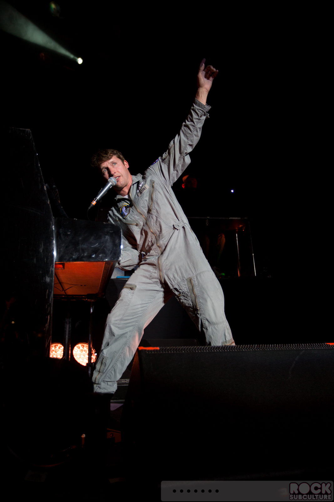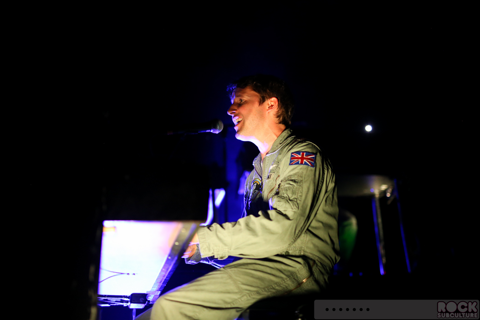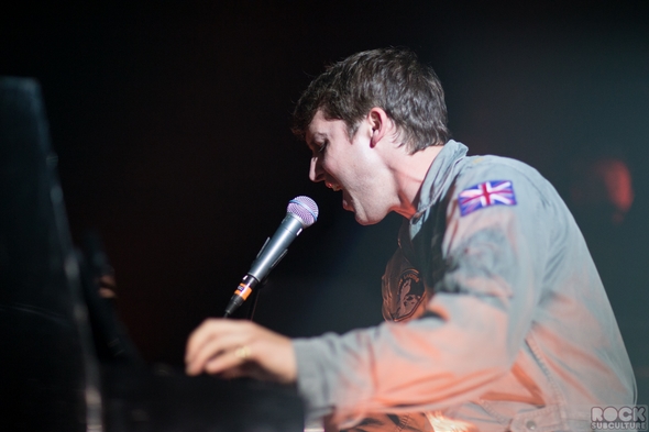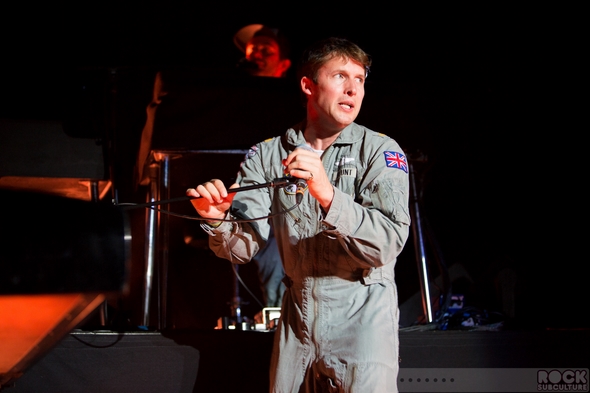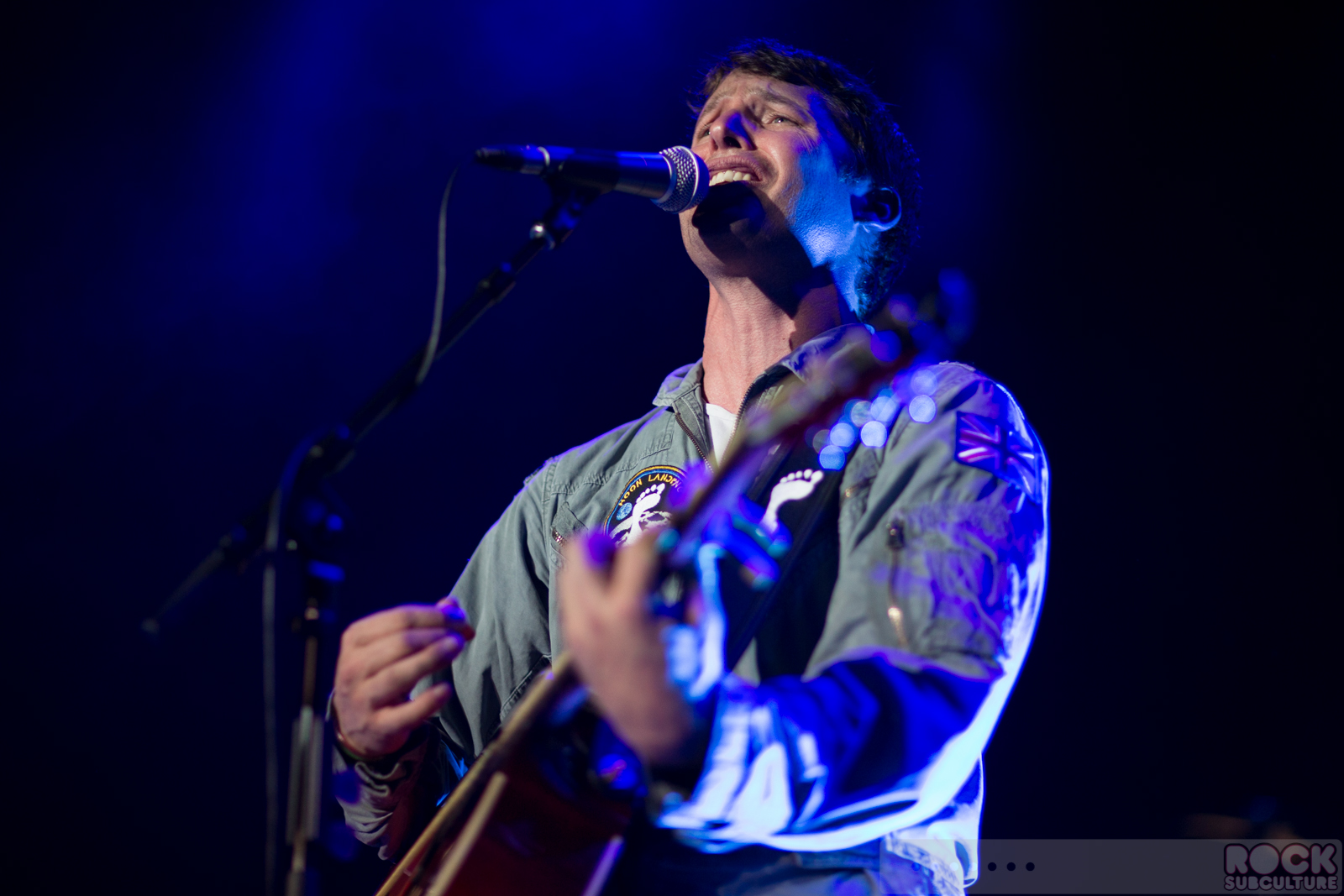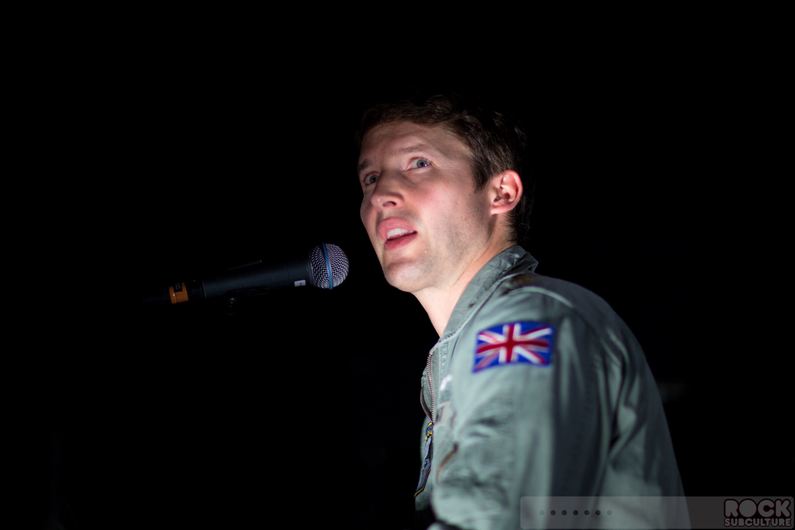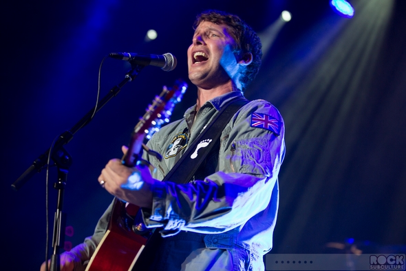 “Before the night is over, I’m going to be in with these guys…” At some point into the sprawling one hour, forty five minute set put on by (an at times plain goofy) James Blunt and his band, the singer-songwriter looked up at the small section of balcony seats in the sold out show at The Fillmore in San Francisco, then glanced at the standing crowd right below, and made those up front feel that something special might happen toward the end of the show. Keeping his promise, a sweaty James Blunt did indeed end up surfing the crowd – not what one might expect of the emotional crooner, best known for his kind of dark, break out hit song “You’re Beautiful”. Full of energy and great humor (much of it self-deprecating, which wasn’t surprising coming from an Englishman), James Blunt seemed like a born entertainer, feeding off the crowd and giving it all back in spades. At times it seemed like a bit of an odd affair all around; kind of like what might come about from making cookies without a cookie cutter… the audience certainly didn’t fit any particular profile or stereotype, and his music seemed to draw what you might call “people who don’t dance at concerts” (and funny enough, I would classify myself as one of those), so there was a sort non-traditional connection between artist and fan – not so much seen, but felt. It seems that the James Blunt fan might be more of a devotee – quizzing the crowd up front, people started a line at 2:30 for the 7:00 doors show. With four studio albums under his belt (with the latest, last year’s Moon Landing serving as the theme for this tour), he seems to be doing well, and enjoying himself along the way.