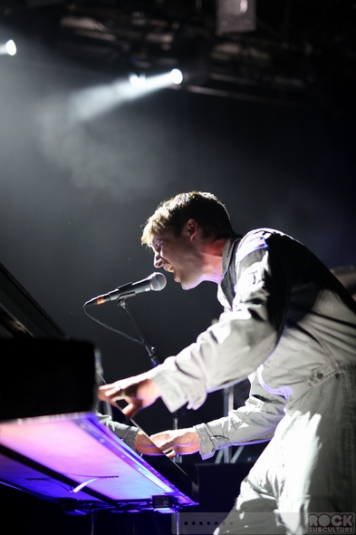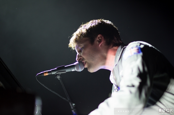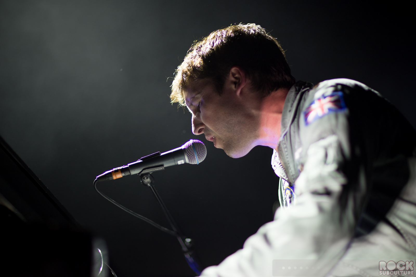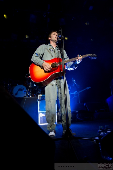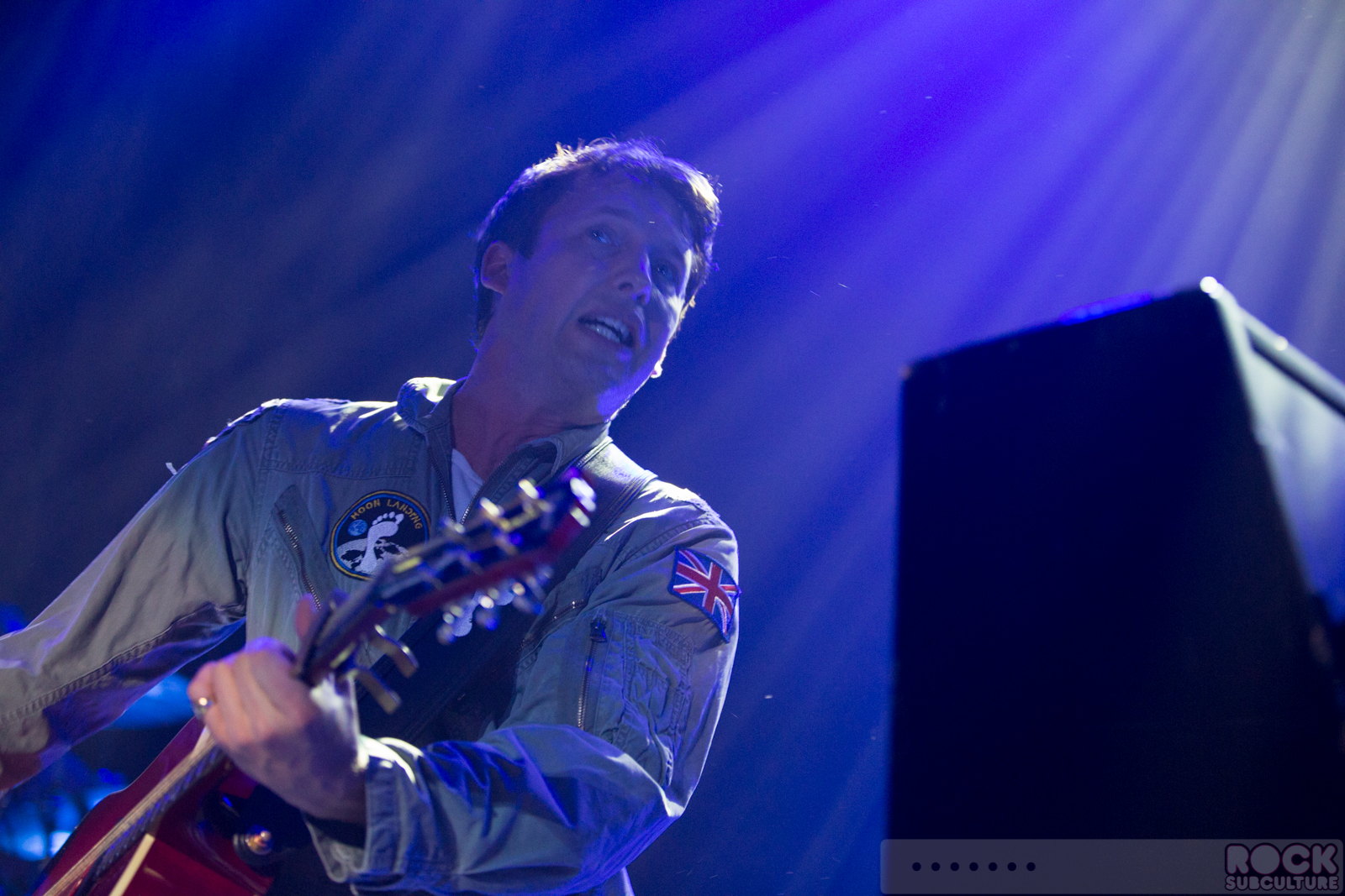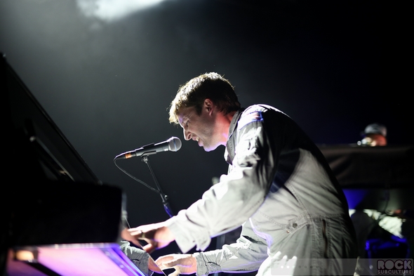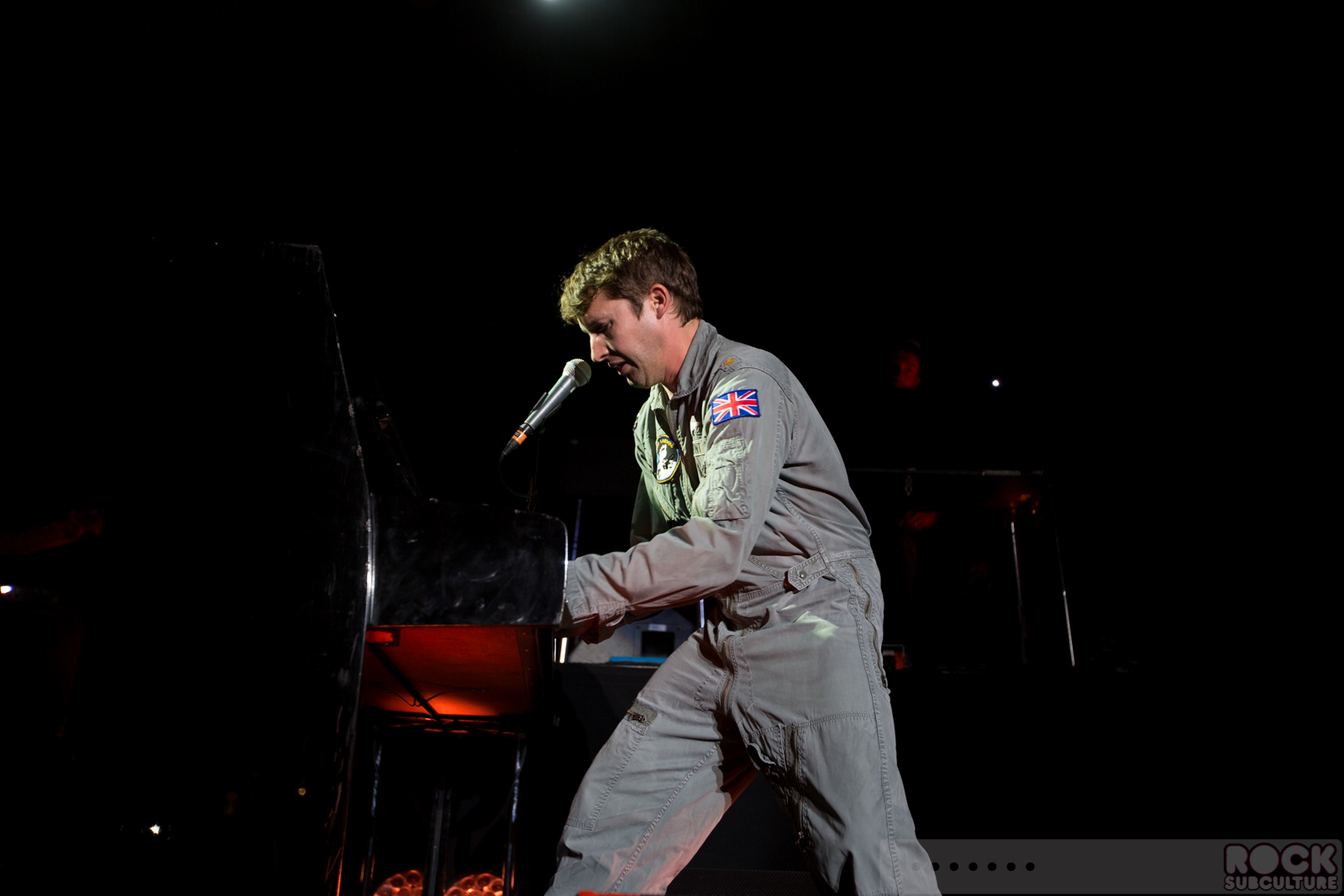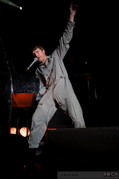 “Before the night is over, I’m going to be in with these guys…” At some point into the sprawling one hour, forty five minute set put on by (an at times plain goofy) James Blunt and his band, the singer-songwriter looked up at the small section of balcony seats in the sold out show at The Fillmore in San Francisco, then glanced at the standing crowd right below, and made those up front feel that something special might happen toward the end of the show. Keeping his promise, a sweaty James Blunt did indeed end up surfing the crowd – not what one might expect of the emotional crooner, best known for his kind of dark, break out hit song “You’re Beautiful”. Full of energy and great humor (much of it self-deprecating, which wasn’t surprising coming from an Englishman), James Blunt seemed like a born entertainer, feeding off the crowd and giving it all back in spades. At times it seemed like a bit of an odd affair all around; kind of like what might come about from making cookies without a cookie cutter… the audience certainly didn’t fit any particular profile or stereotype, and his music seemed to draw what you might call “people who don’t dance at concerts” (and funny enough, I would classify myself as one of those), so there was a sort non-traditional connection between artist and fan – not so much seen, but felt. It seems that the James Blunt fan might be more of a devotee – quizzing the crowd up front, people started a line at 2:30 for the 7:00 doors show. With four studio albums under his belt (with the latest, last year’s Moon Landing serving as the theme for this tour), he seems to be doing well, and enjoying himself along the way.