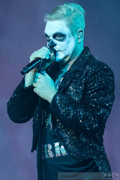 Though Andy came out originally in his skeleton costume, he made a partial costume change further into the show, and as it went on, there was a pile of costume parts at the foot of his mic stand, as his face paint melted away, which I found kind of funny.