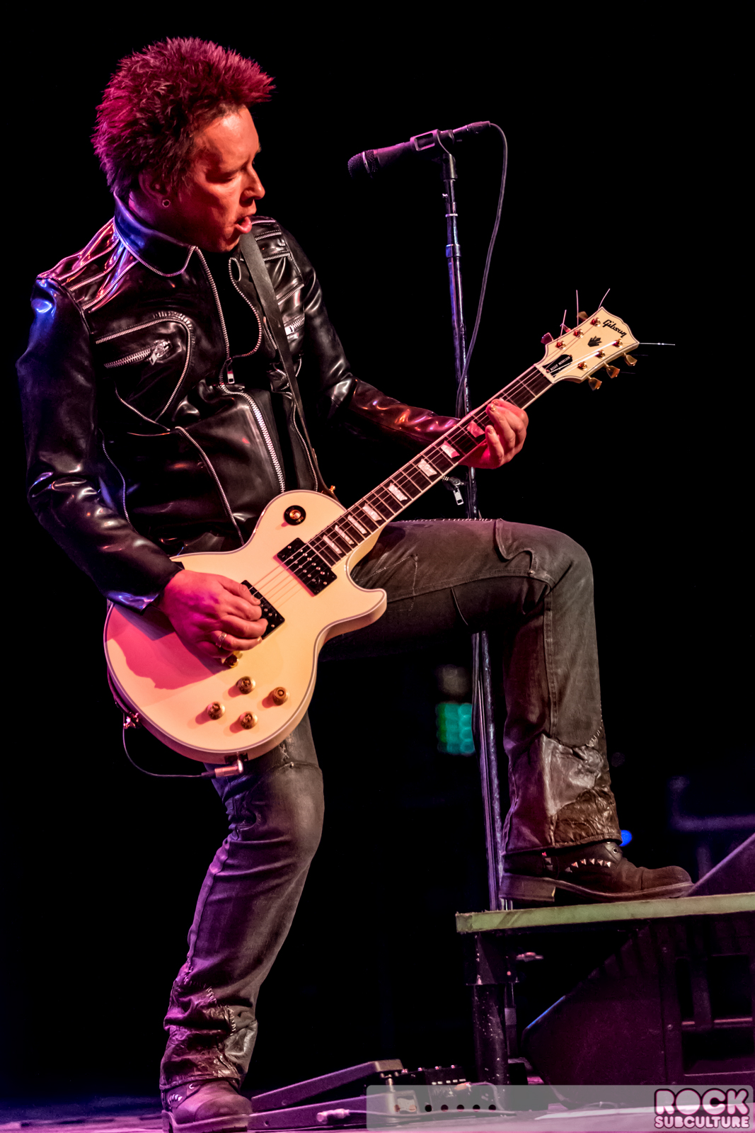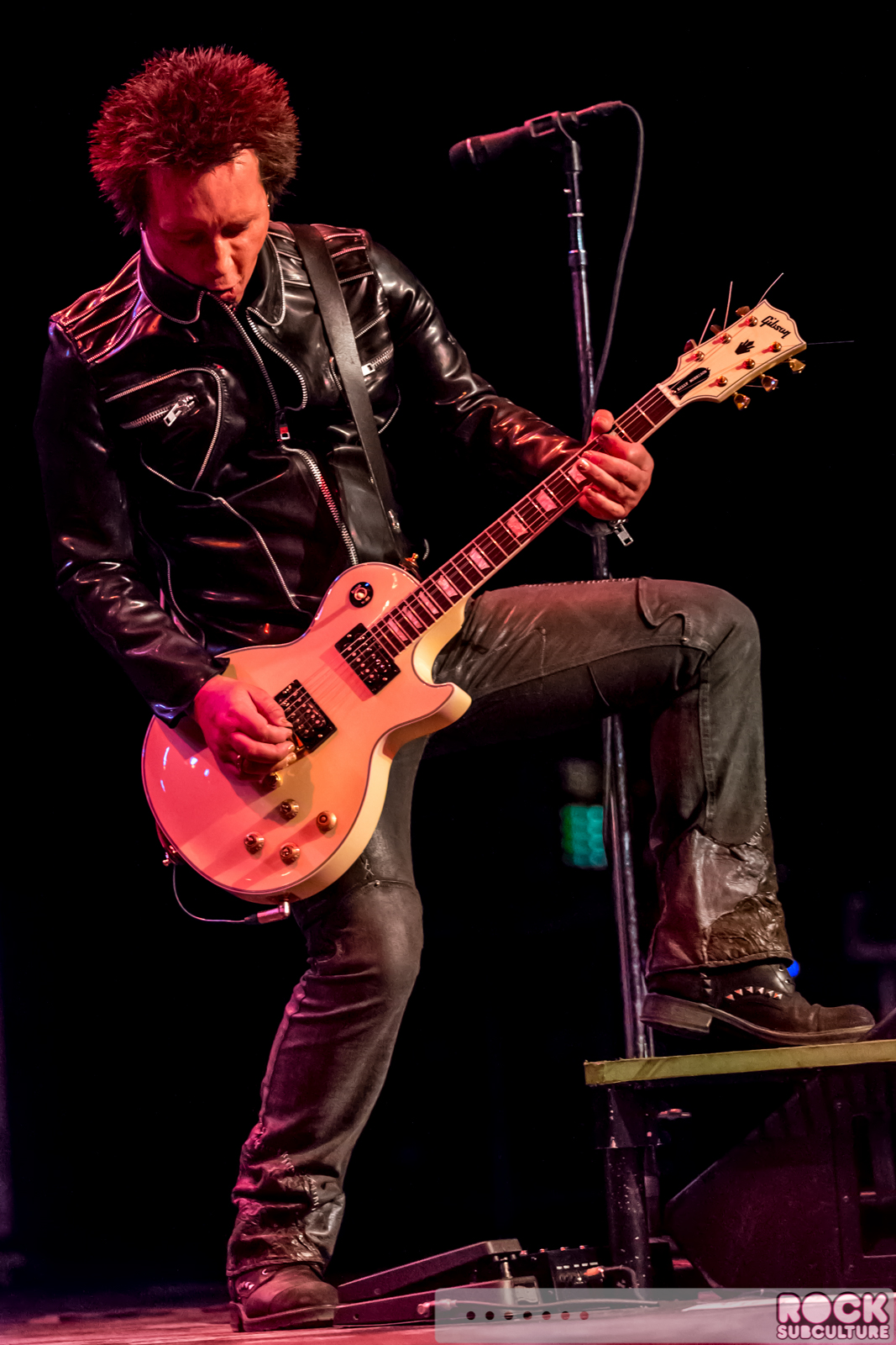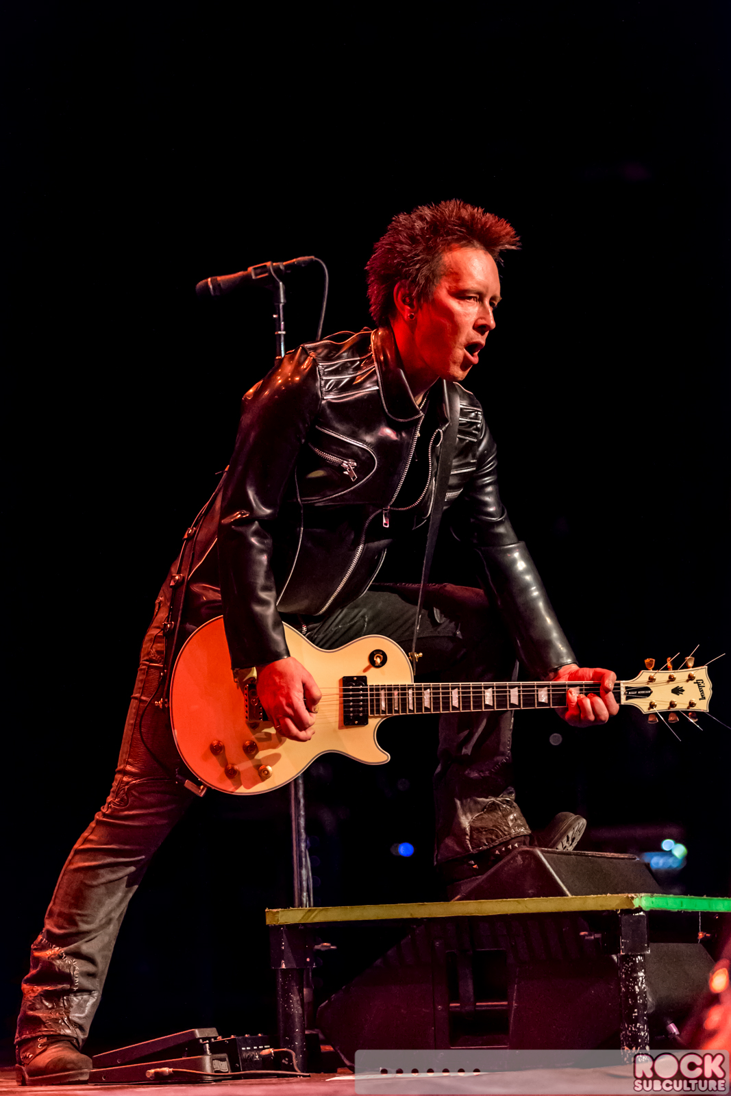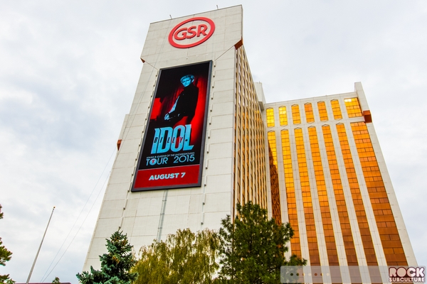 “Two words to introduce this next song! Two words! Two words to introduce this next song! Two words to introduce this next song!” Billy Idol getting the sold out crowd of nearly 3,000 screaming, fist pumping fans shouting “Rebel Yell” at the opening night of Grand Sierra Resort’s new Grand Theatre. I can’t imagine a better way to launch a high end new concert venue than having none other than Billy Idol kicking off a new tour of his own on the vast stage built on the $10 million dollar renovation of the live music space. Billy Idol has been building on his own career and accomplishments of late, with 2014’s awesome new album Kings & Queens of the Underground (the first in nine years) and bestselling Dancing With Myself autobiography. In the midst of a resurgent mainstream interest in all things Billy Idol, he seems to be as popular as ever. Alongside his incredible band, they’ve put together probably their best live show ever with this tour. It also clocked in as the longest show I’ve seen, at around two hours. I’ve always noted this band as one of my all-time favorite live shows, and I’d have to say that this was the best I’d ever seen them. I’ve always complimented Idol on his boundless and limitless energy and he seems to have reached a new high with this show and tour. He is at once an icon and an enigma, as he continues to evolve his style while retraining his trademark lip curl and tongue in cheek uncensored gestures, looks, and poses. And one can’t neglect to mention Mr. Steve Stevens on lead guitar, who could put the audience in a trance even if he stood alone on the stage – one of the best guitarists performing today, if not the very best. If you haven’t been to a Billy Idol concert lately, you haven’t seen him and his band at all, as they are better than they’ve ever been, and that is saying a lot.