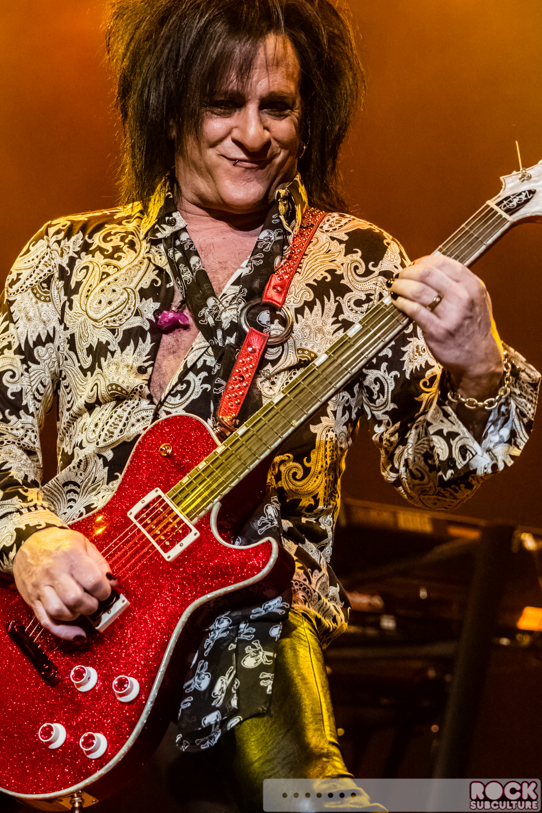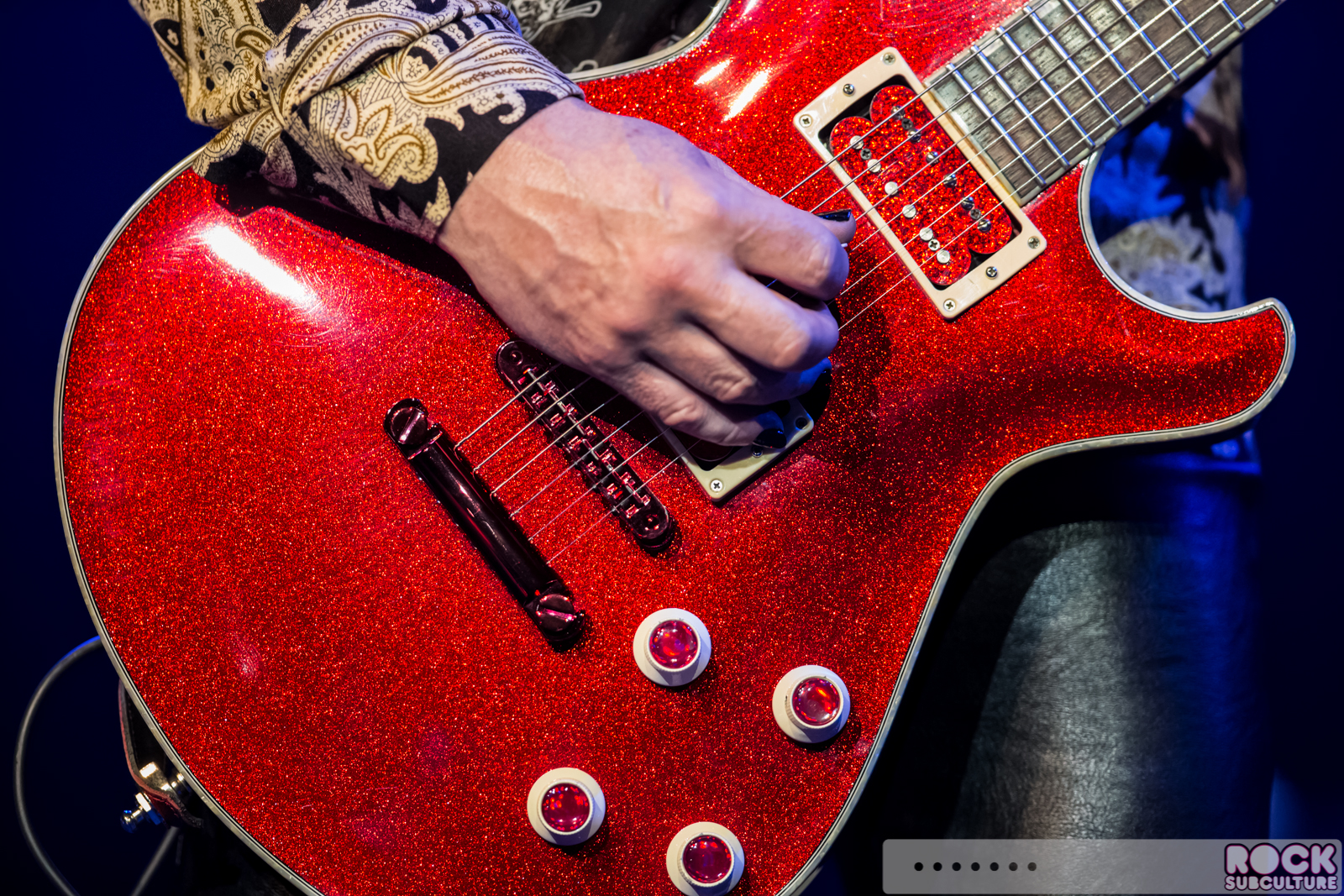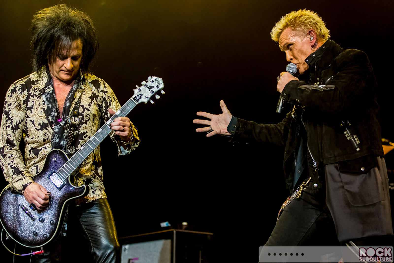 “Two words to introduce this next song! Two words! Two words to introduce this next song! Two words to introduce this next song!” Billy Idol getting the sold out crowd of nearly 3,000 screaming, fist pumping fans shouting “Rebel Yell” at the opening night of Grand Sierra Resort’s new Grand Theatre. I can’t imagine a better way to launch a high end new concert venue than having none other than Billy Idol kicking off a new tour of his own on the vast stage built on the $10 million dollar renovation of the live music space. Billy Idol has been building on his own career and accomplishments of late, with 2014’s awesome new album Kings & Queens of the Underground (the first in nine years) and bestselling Dancing With Myself autobiography. In the midst of a resurgent mainstream interest in all things Billy Idol, he seems to be as popular as ever. Alongside his incredible band, they’ve put together probably their best live show ever with this tour. It also clocked in as the longest show I’ve seen, at around two hours. I’ve always noted this band as one of my all-time favorite live shows, and I’d have to say that this was the best I’d ever seen them. I’ve always complimented Idol on his boundless and limitless energy and he seems to have reached a new high with this show and tour. He is at once an icon and an enigma, as he continues to evolve his style while retraining his trademark lip curl and tongue in cheek uncensored gestures, looks, and poses. And one can’t neglect to mention Mr. Steve Stevens on lead guitar, who could put the audience in a trance even if he stood alone on the stage – one of the best guitarists performing today, if not the very best. If you haven’t been to a Billy Idol concert lately, you haven’t seen him and his band at all, as they are better than they’ve ever been, and that is saying a lot.