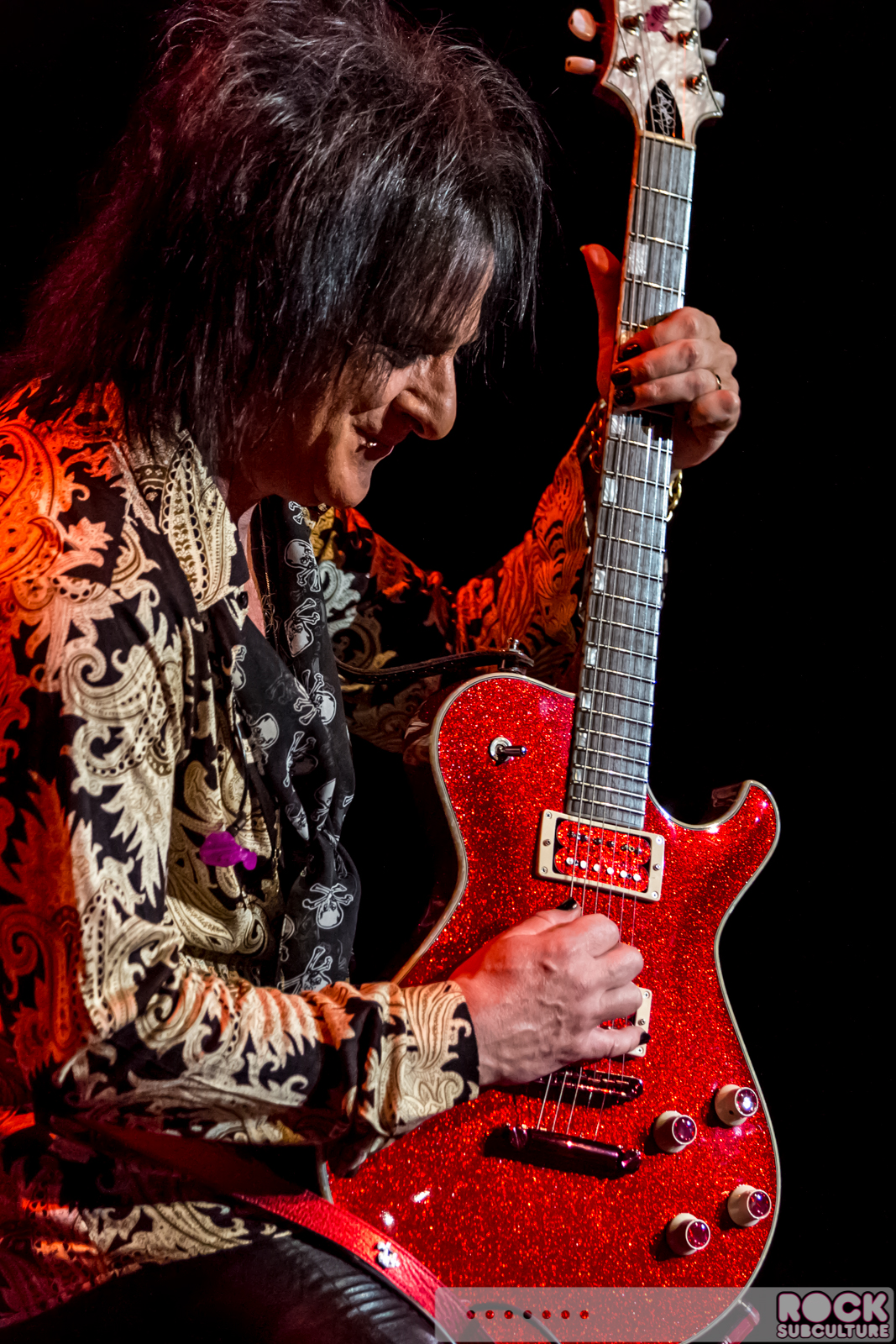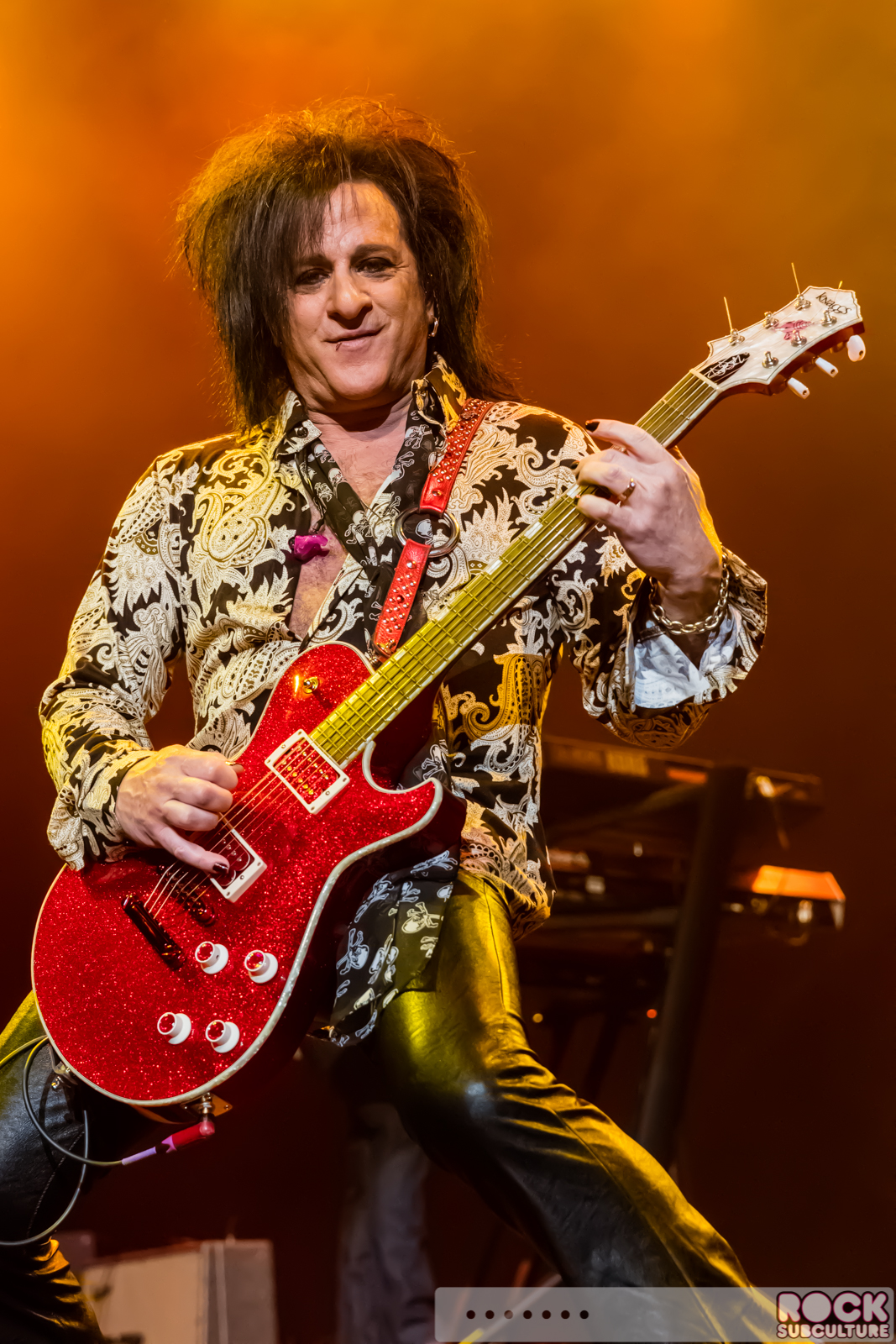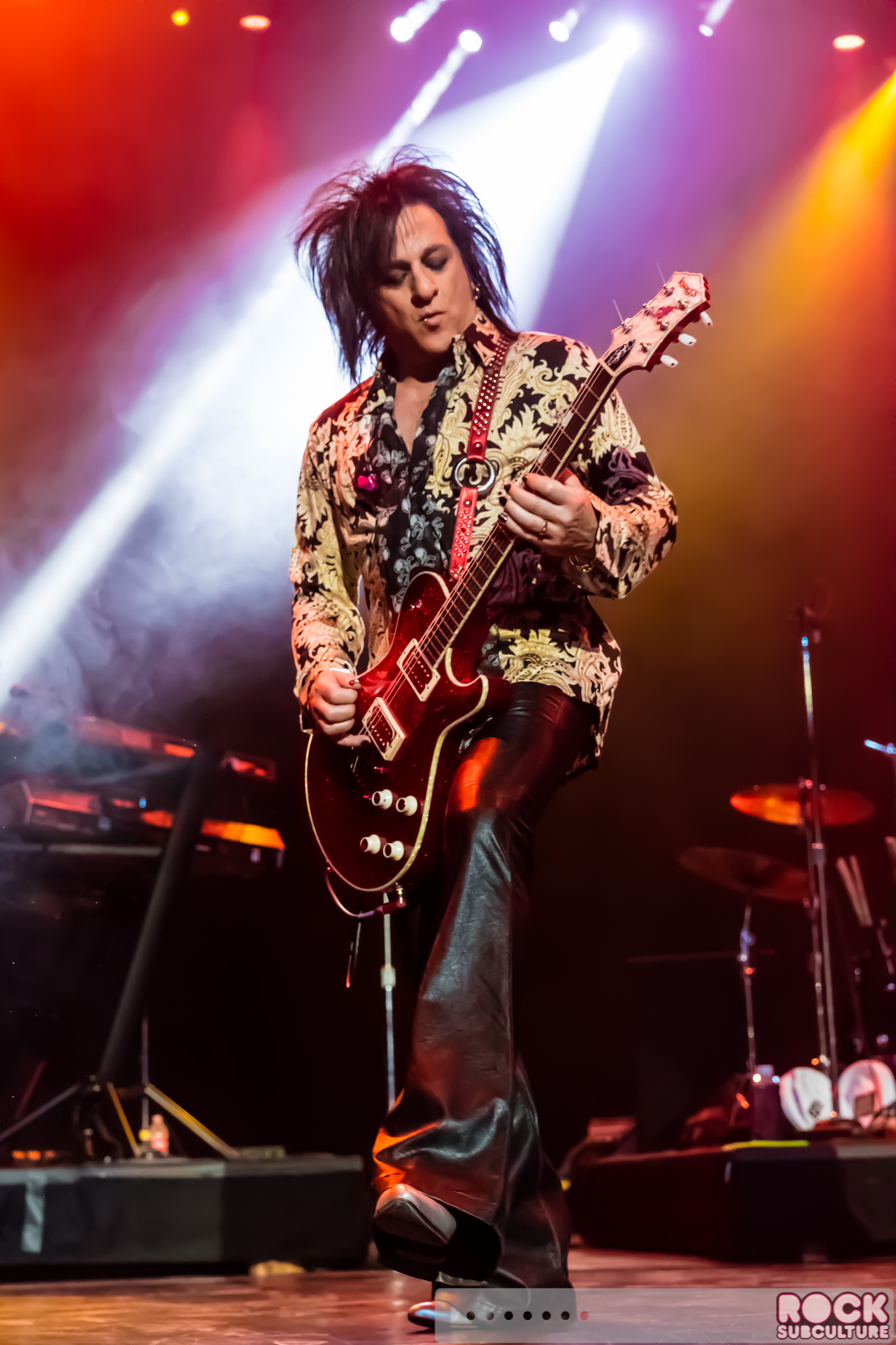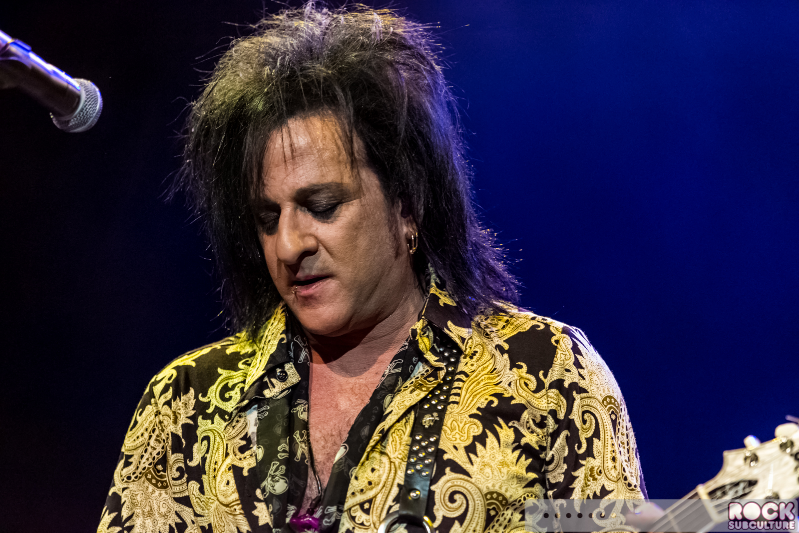 Steve Stevens is without a doubt the most entertaining and impressive guitar player I’ve ever seen. He has so much style and ability he can truly be mesmerizing, especially when he’s standing just a few feet in front of you. One of the more interesting things this time around, among a bag of tricks that includes playing behind his head and even with his teeth, is a special light-up ring that he uses for distortion effects, like a magician with an electric guitar.