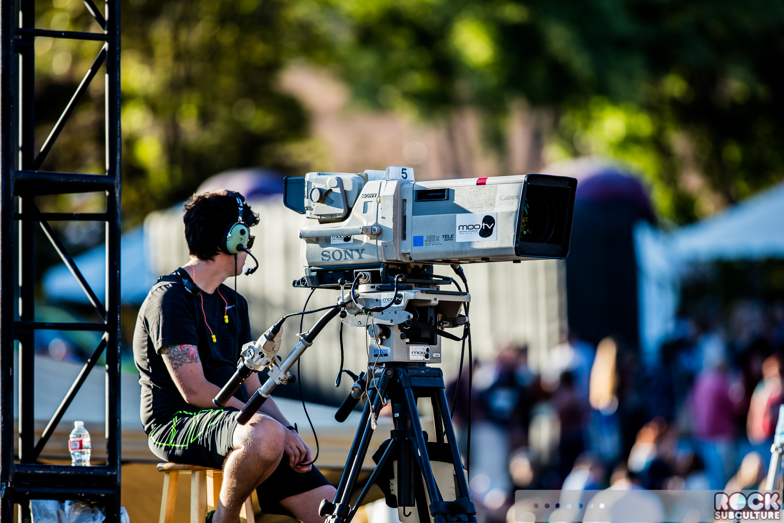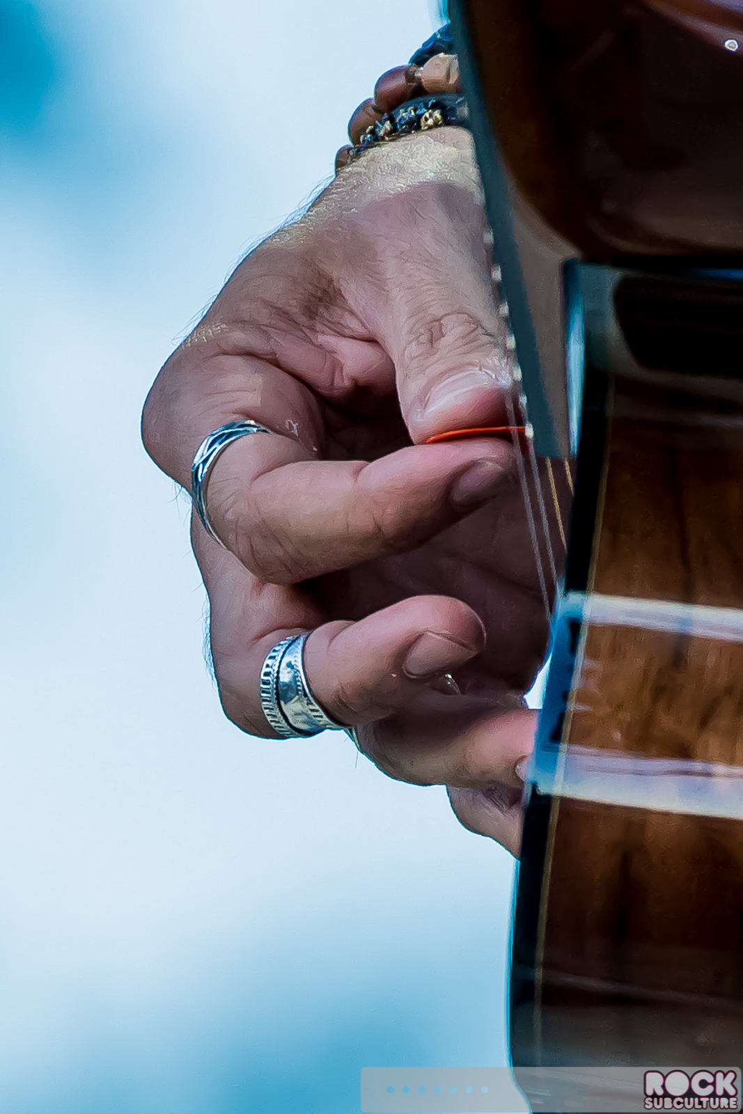 Unfortunately, when he first came onto the stage, the sun was heading down directly across from his point of view, and he ended up borrowing some sunglasses from a fan in the audience for a bit.