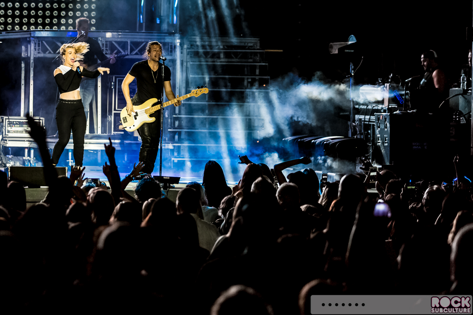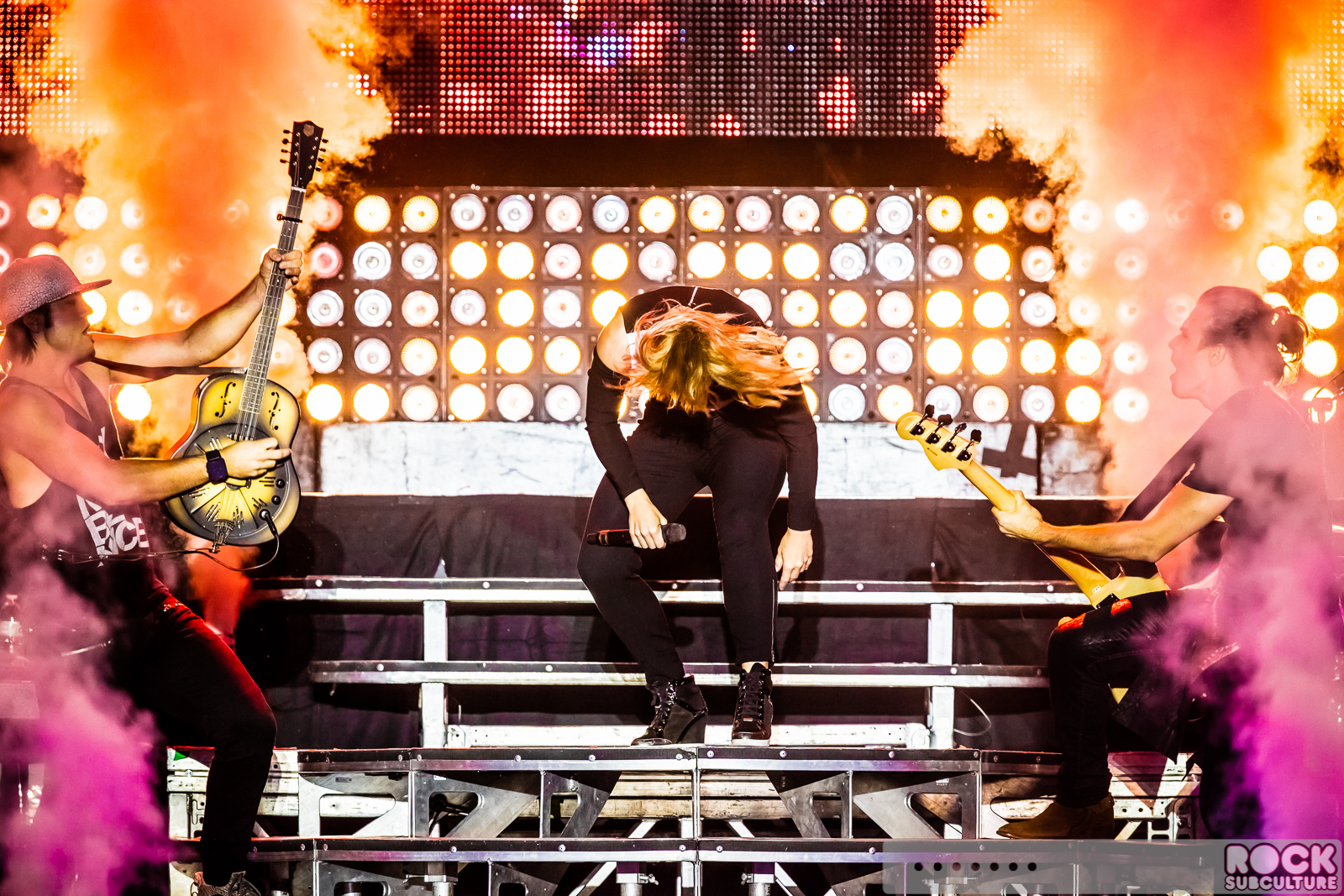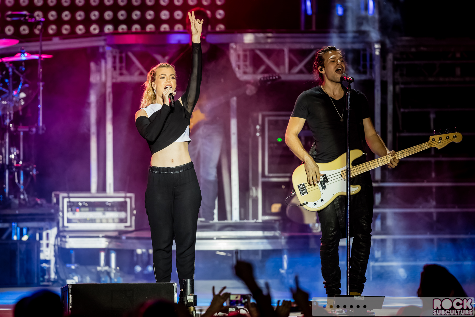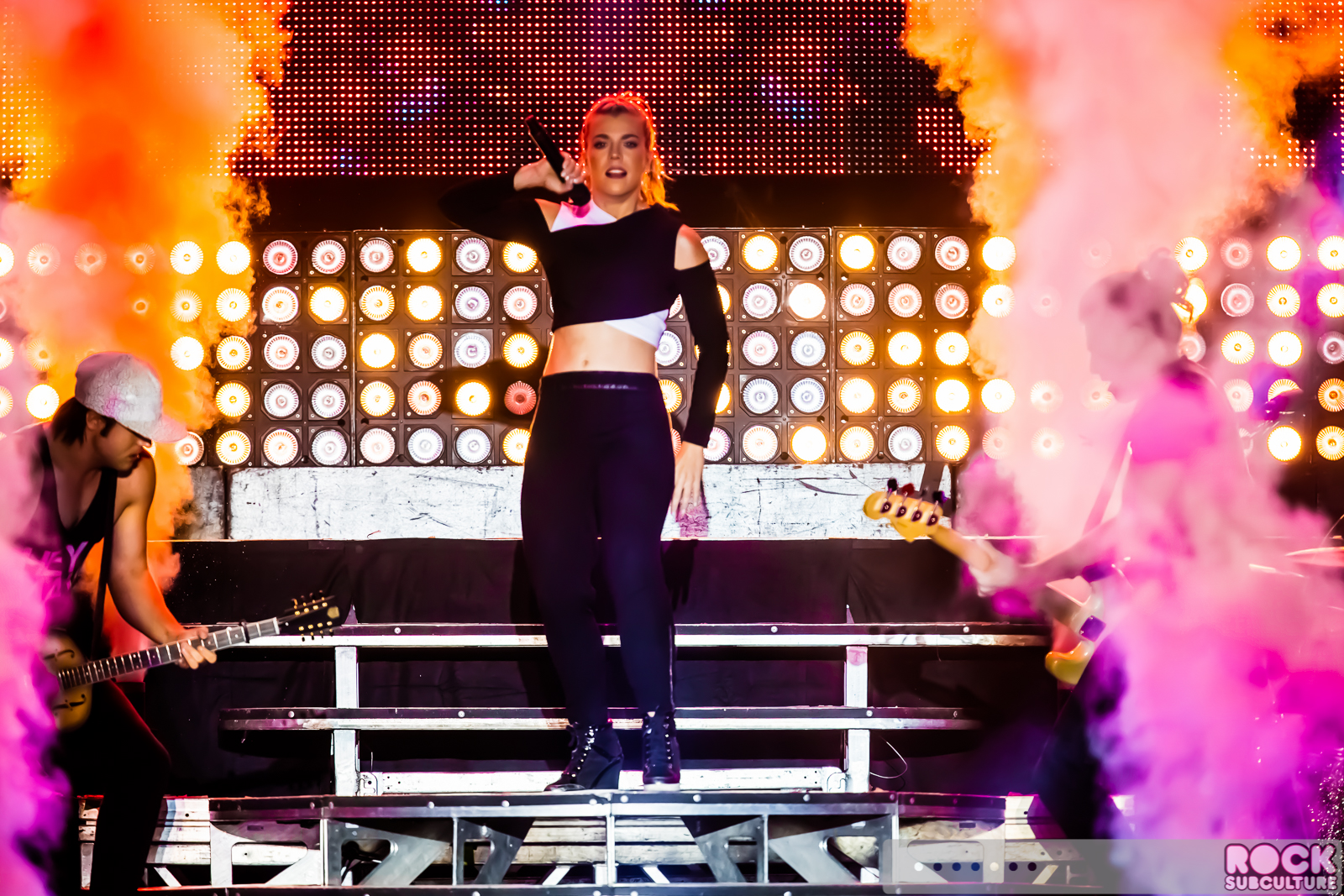 With their show at Ironstone Amphitheatre, it was perhaps the most elaborate stage set-up there yet. Center stage was a cascading set of stairs, with a giant jumbo screen set across the back that was put to constant use. There were also smoke burst effects timed in with some of the songs.