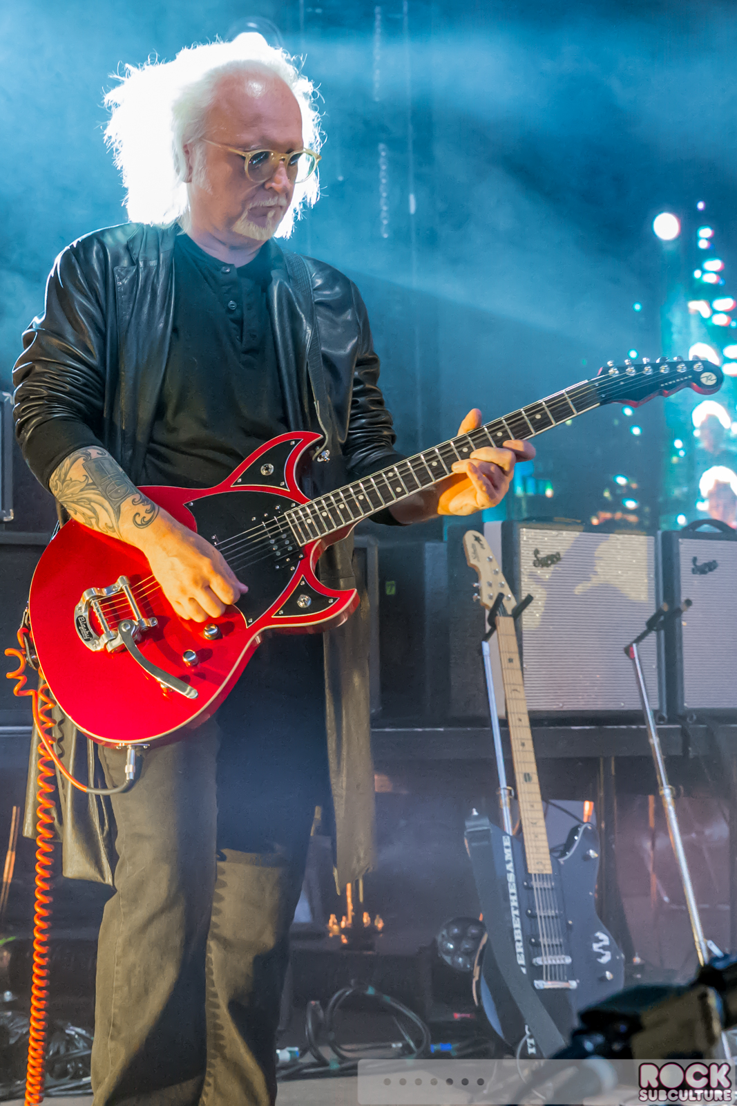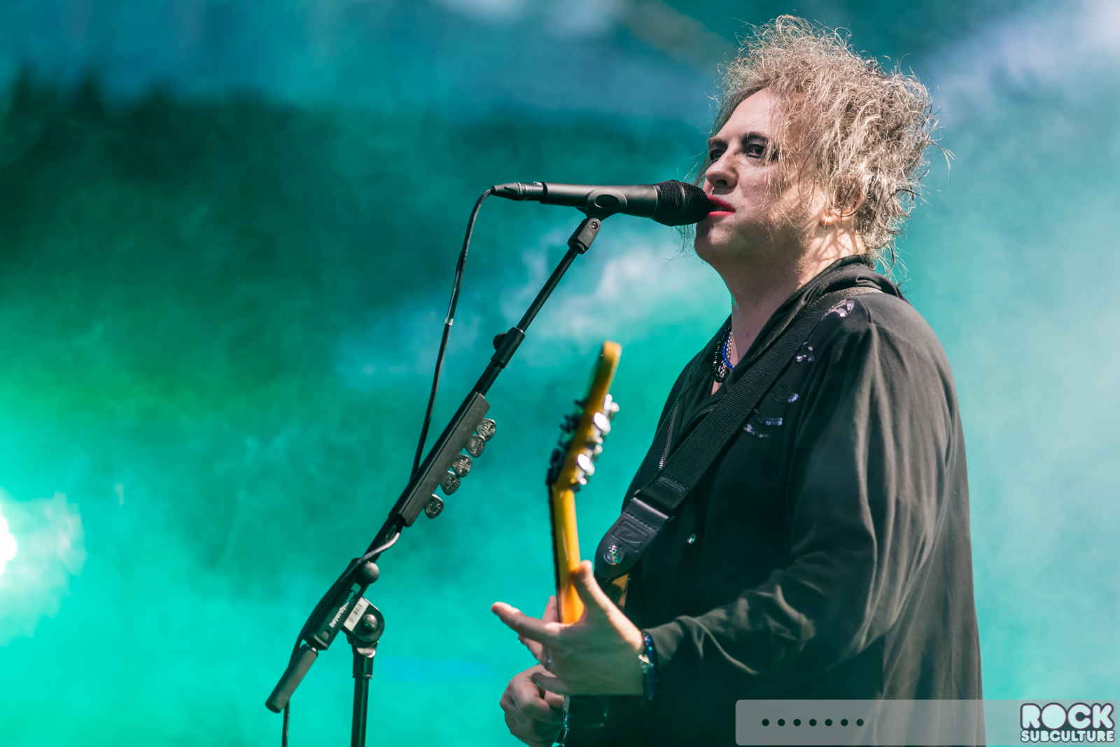 “Put your hands in the sky…” Robert Smith of The Cure dispenses with the chit chat in-between songs for the most part, but fans of the band are so into every thought expressed in every song that the subconscious grooves in the back of their mind move them to connect with the moment, as as he sang those words during “From The Edge Of The Deep Green Sea”, a majority of the sold out crowd at Shoreline Amphitheatre reached up to the blue above. Not even a “hit” song for the band, that is the power of their music among the devoted. But it wasn’t just those long-time, hardcore fans that turned out for this show, but quite a number of “casual” fans as well, as this current tour is their first major one in the U.S. in about seven years. Apparently, their absence has been felt and their return is cause for celebration. They are not touring just the U.S., but the world at large through the end of the year. With their sprawling set lists and shows running around three hours non-stop with three or four encores, one wonders how they physically keep up… yet the shows they put on are stellar and truly unique experiences. The band has been recording and performing for so long – formed four decades ago – it is something just to hear the music from such different eras all performed in the same style and sound, with Smith’s matured vocals making them better than ever. A spectacular evening of music from one of the most original and talented bands of my generation – live music events don’t really get much better than this. One of the “must see” tours of the year, hands down.