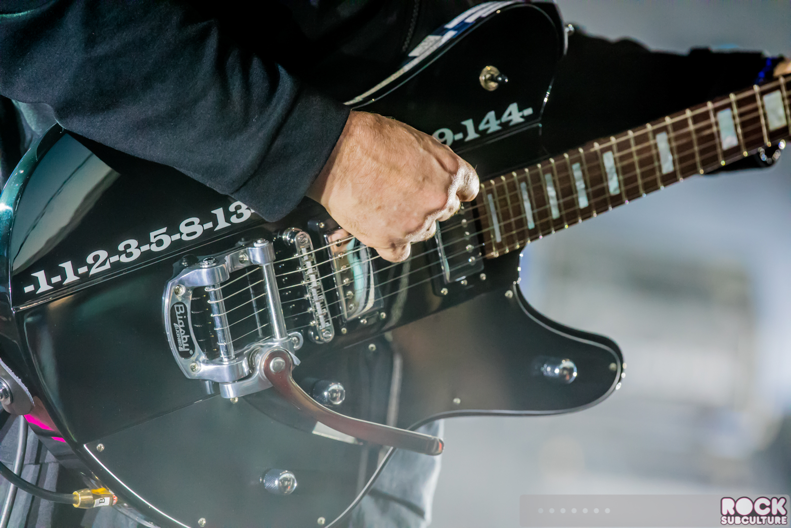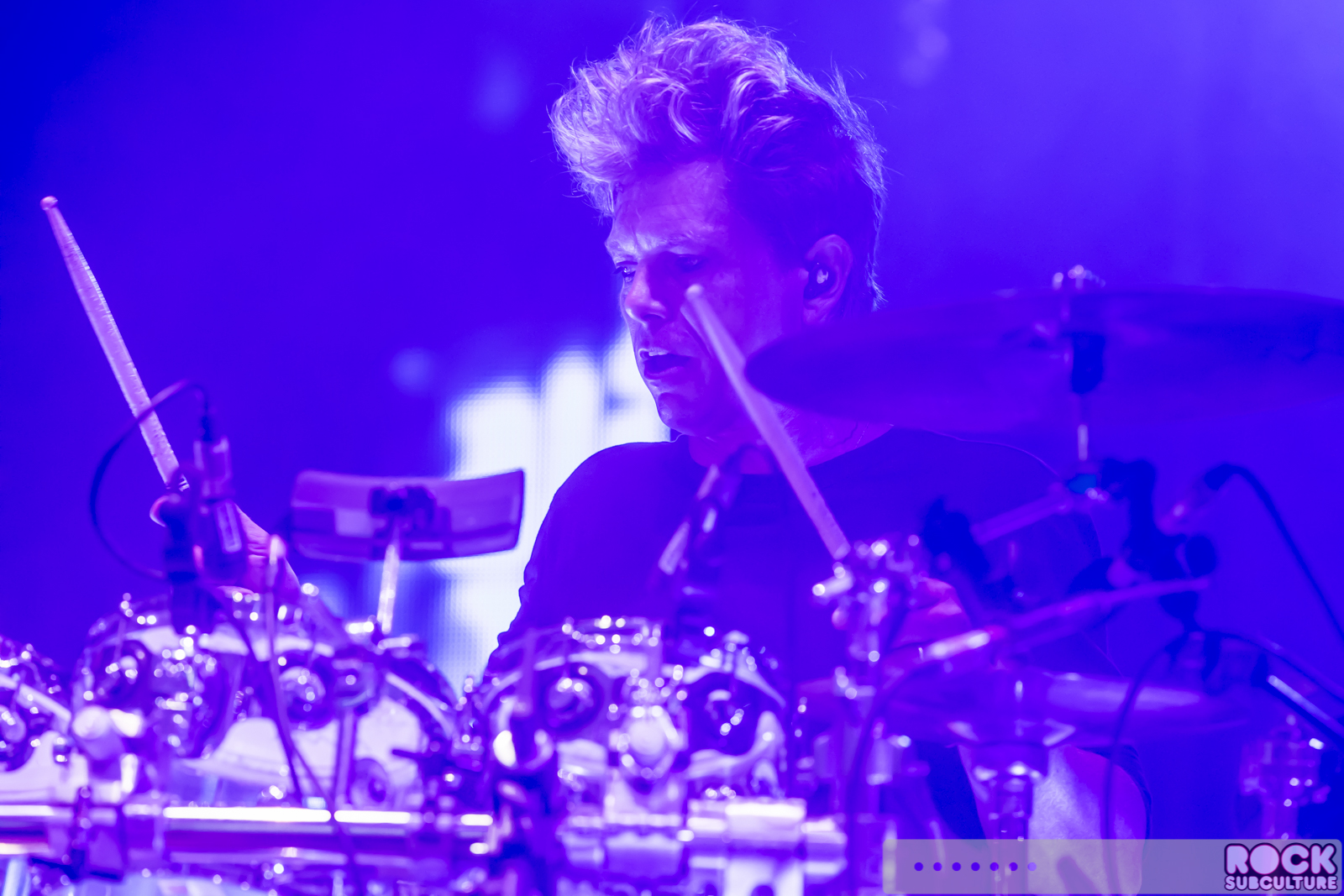 One of the big changes with this new world tour is the production – a lot has been enhancede with graphics projected behind them as well as the lighting, much of it crafted uniquely to each song. Even the little touches here and there, like with the lyrics, “laughing at the Christmas lights” triggering a flashing of red and green lights on the light bar above the stage. Attention to details like this makes the show “work” on a grander scale when playing to a 22,000+ capacity venue like Shoreline.