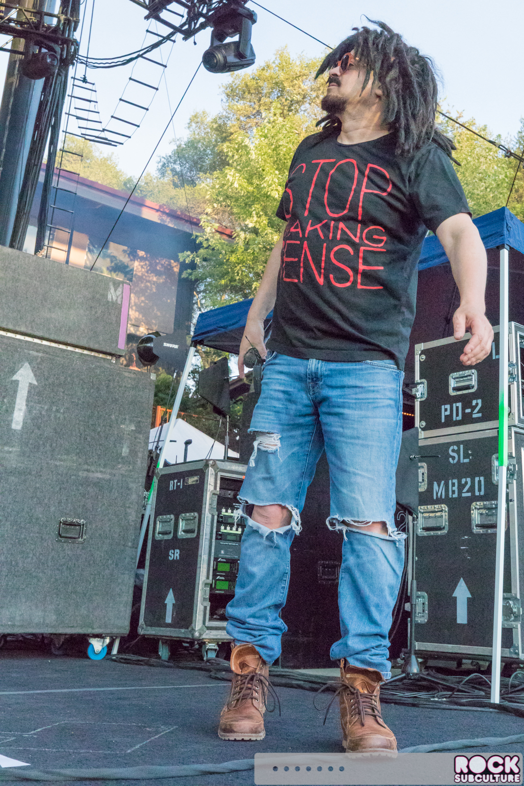 Below are some photos of Counting Crows performing on stage (scroll downward and photos will begin to appear – click any image to open a virtual lightroom with higher resolution versions of each photo). Photos by Jason DeBord have the Rock Subculture watermark and those by my wife Shelley DeBord have the watermark of our other website, Pixel Dust Moments: