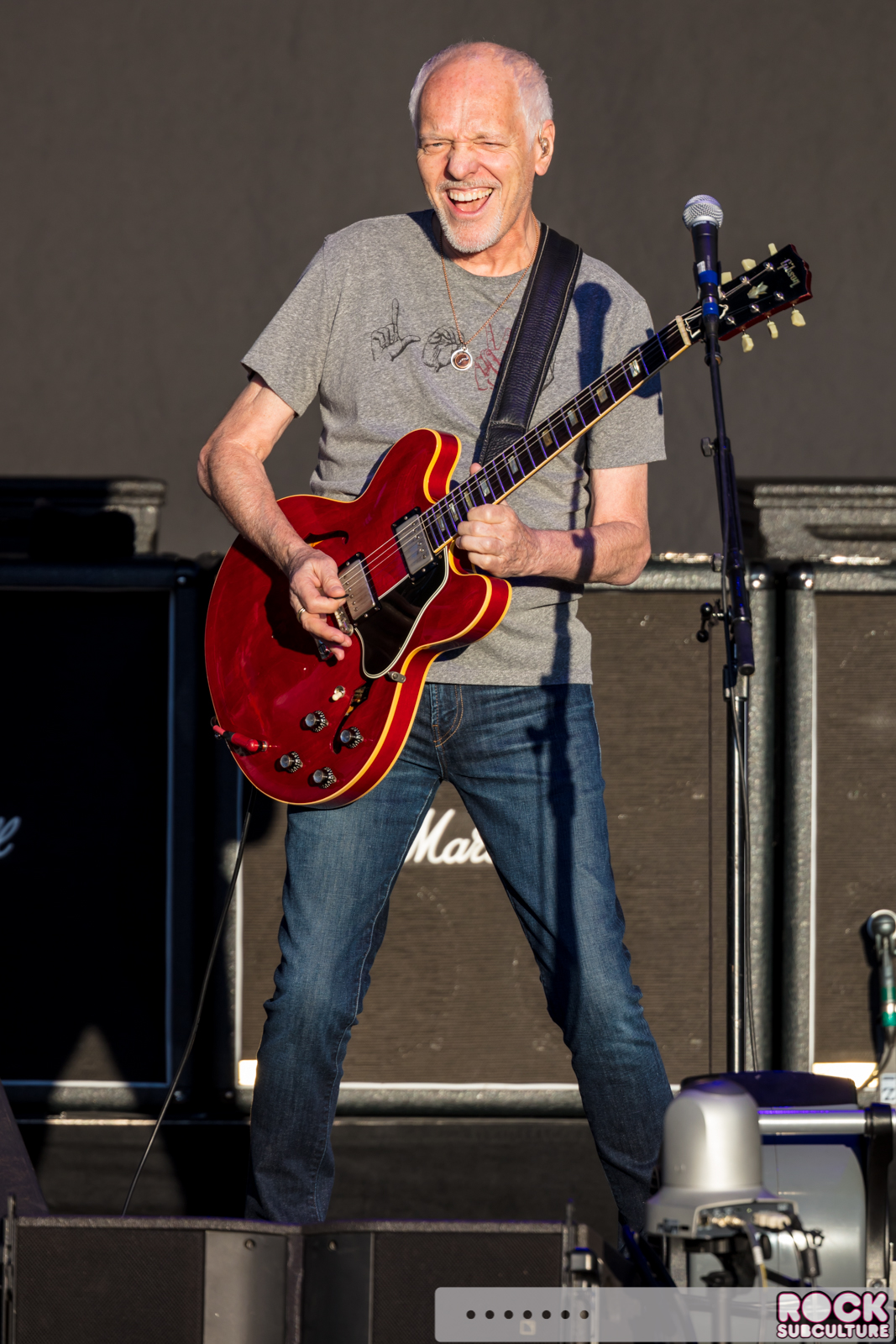 Though associated with “classic rock”, he seems like he’s been pushing the envelope for what rock and roll even is his entire career. One interesting contraption on the center of the stage Sunday night was his “Framptone” “Talk Box”, which allows him to talk with/sing with his guitar with pre-Auto-Tune technology.
