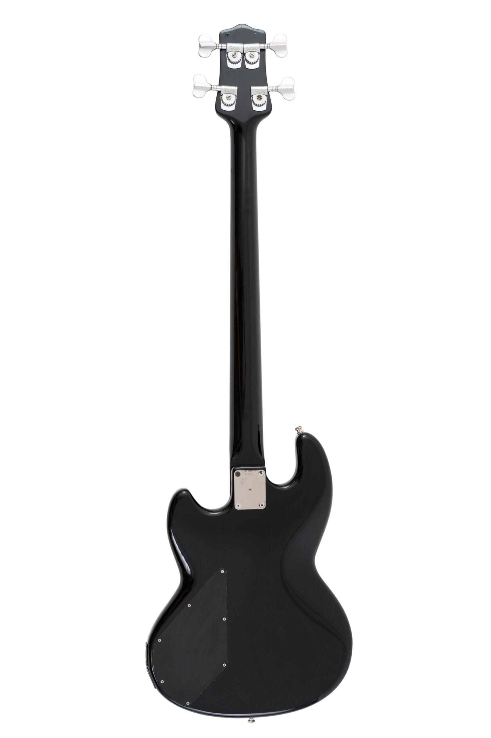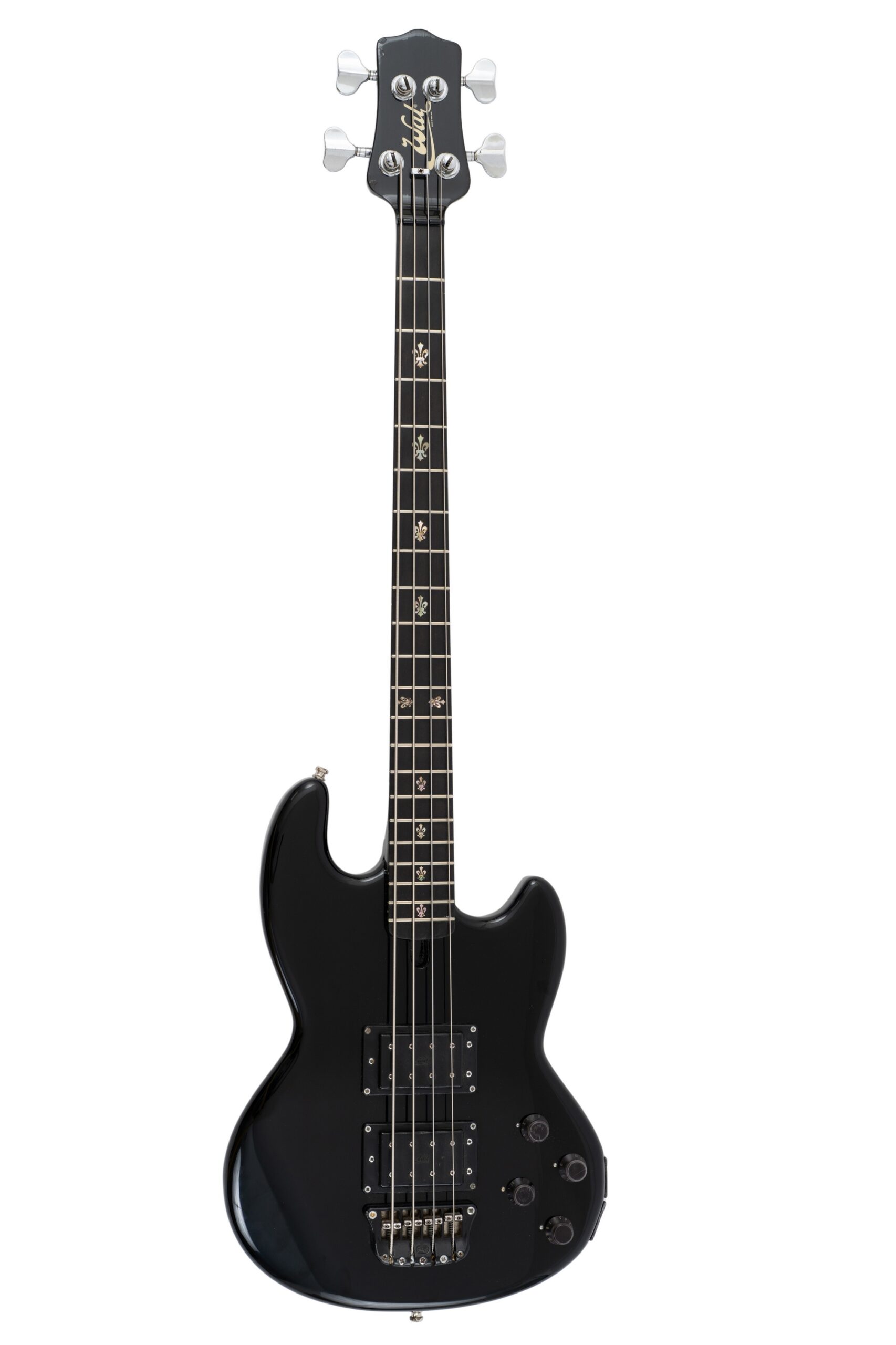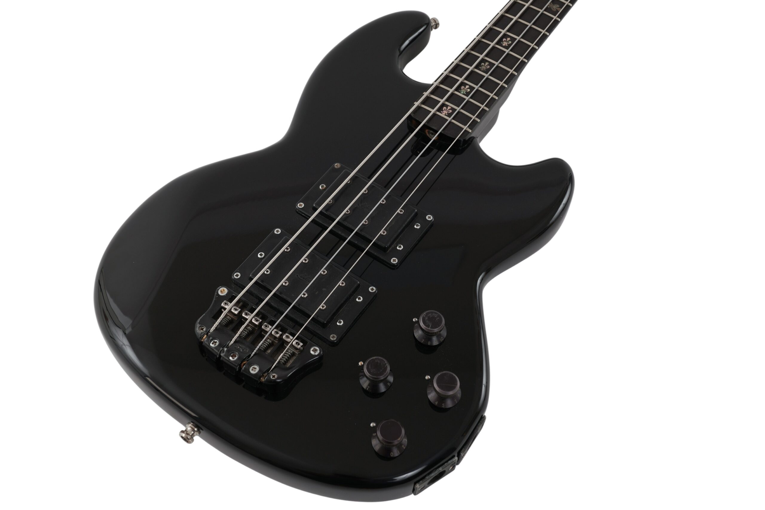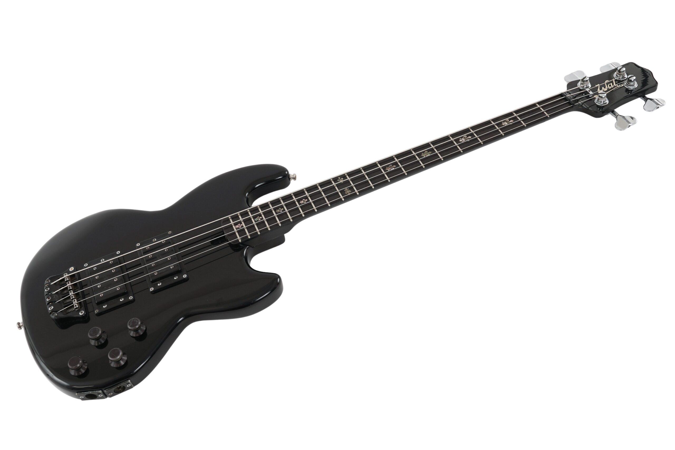 The Wal Mk 1 is a custom 4-string bass featuring a 34″ scale length, 21-fret neck, extended upper horn reaching the 14th fret, and contoured body design intended for balance and comfort.⁸