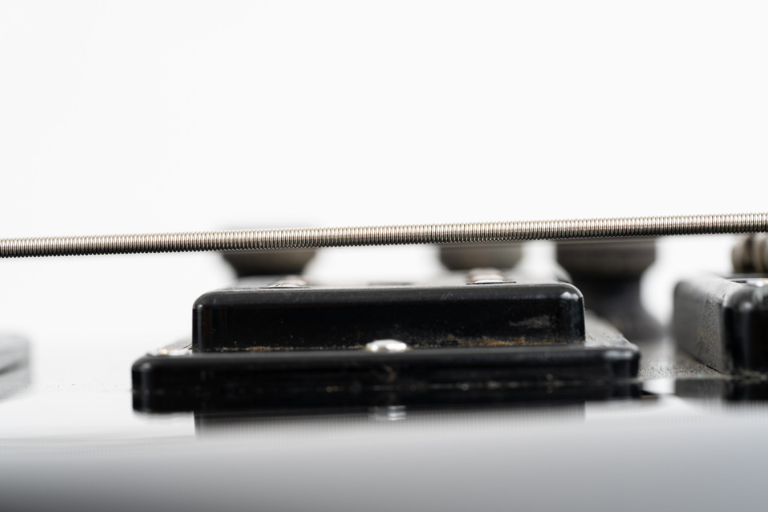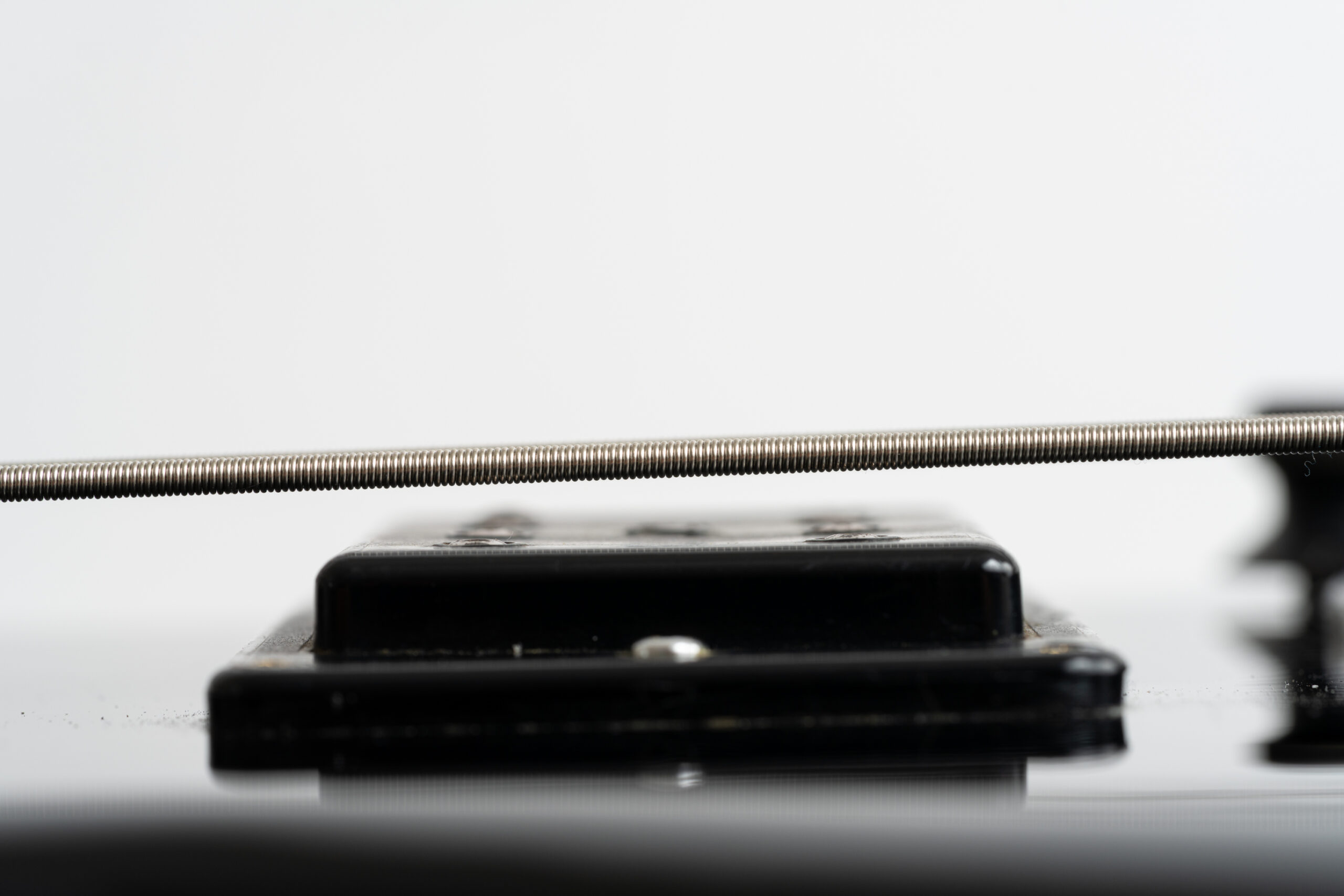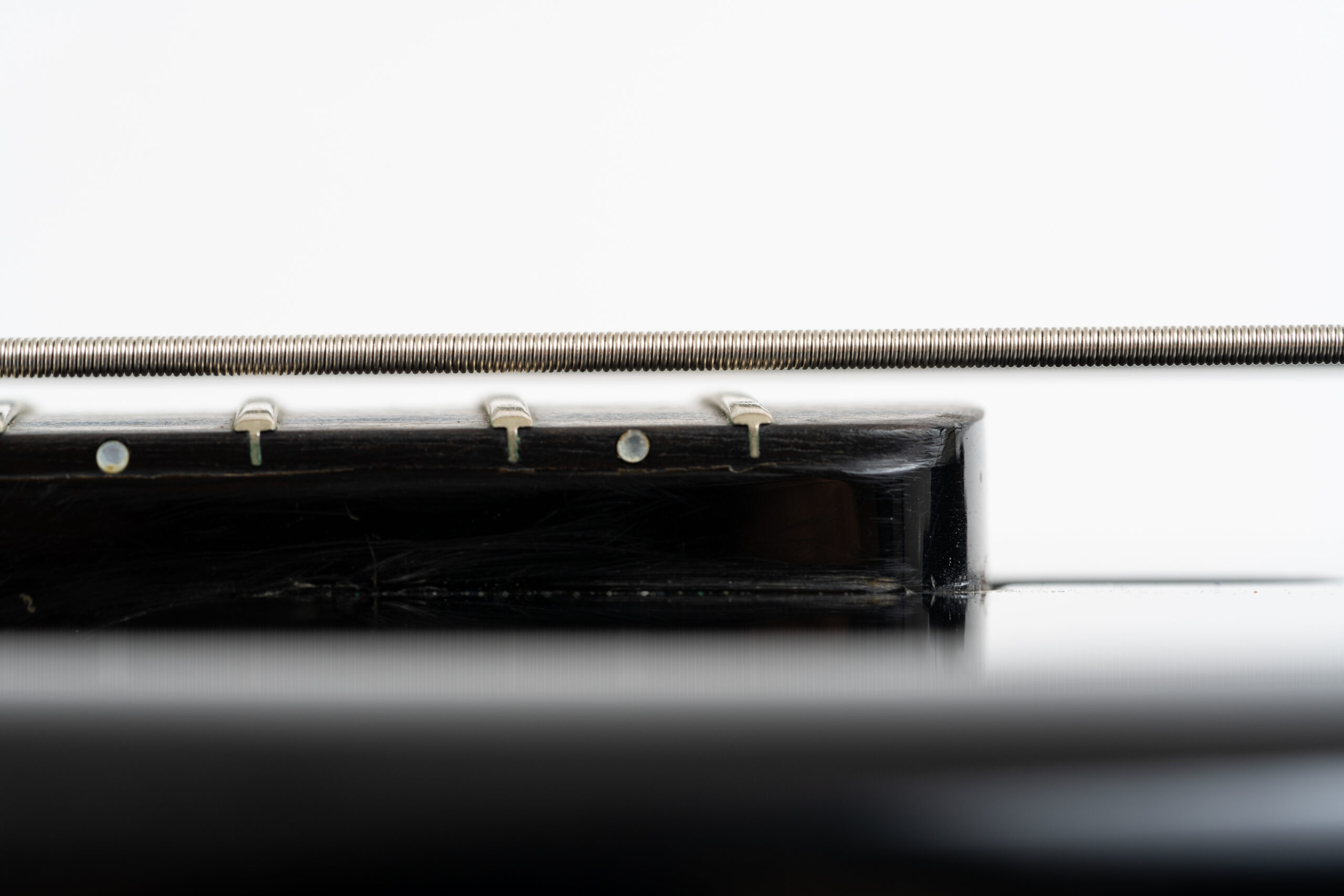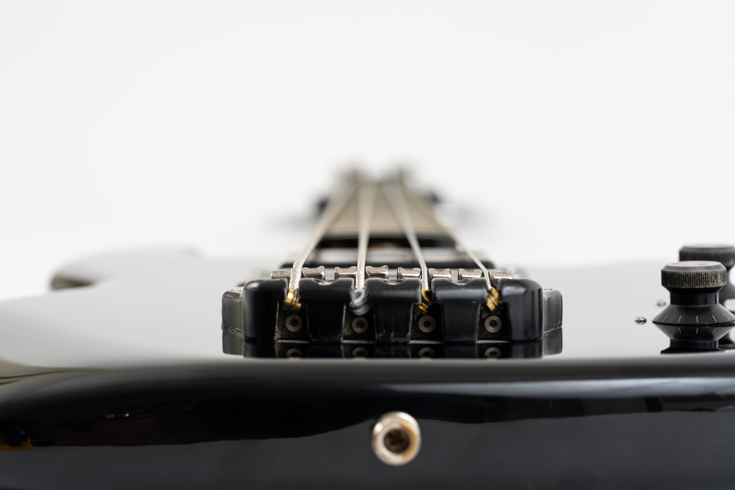 - Fingerboard: Ebony (incorrectly noted as “Rosewood” on scratch plate label)