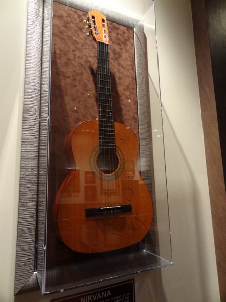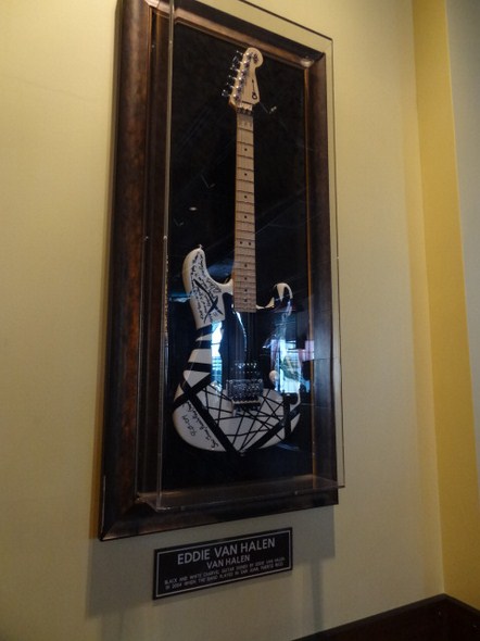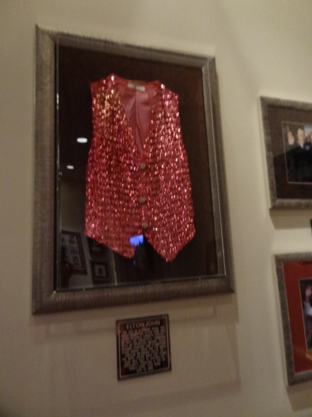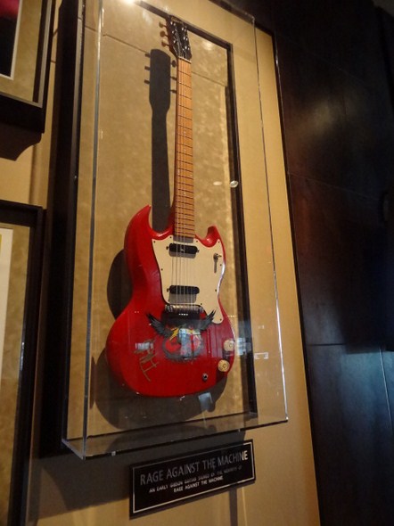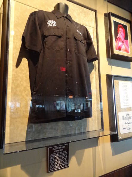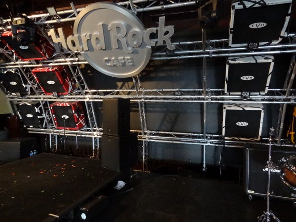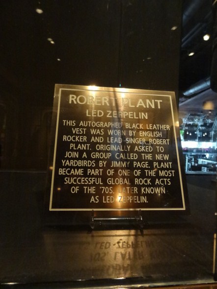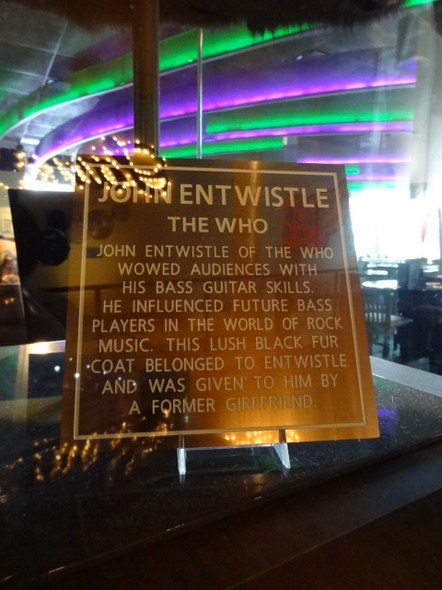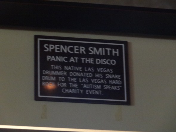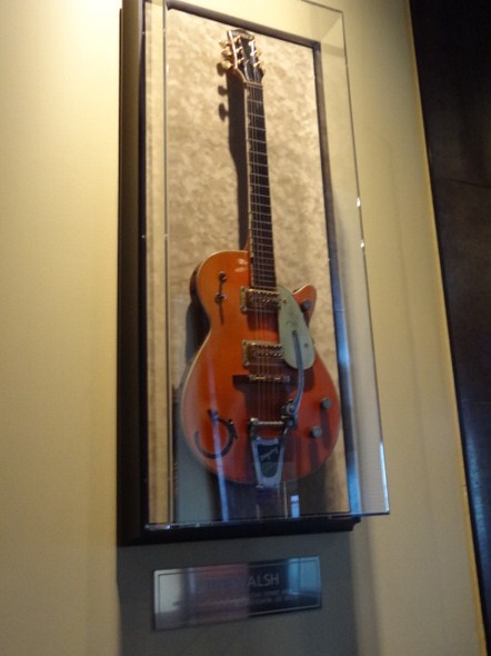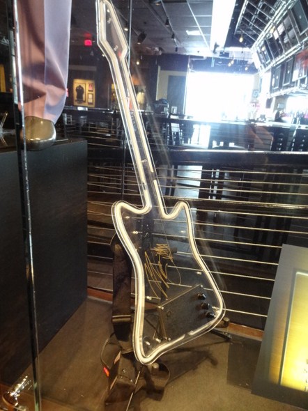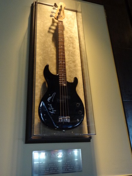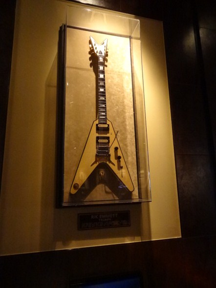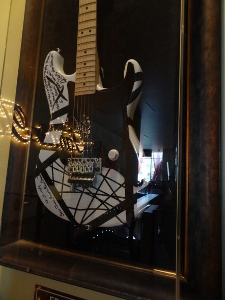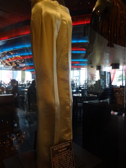 During my trip this past week to Las Vegas, I had taken an opportunity to check out the Hard Rock Cafe Las Vegas, and was treated to a lengthy private tour, so I thought I would share some photos of some of the material on display at this location, including stage and studio used instruments, wardrobe, and other rock and roll memorabilia.