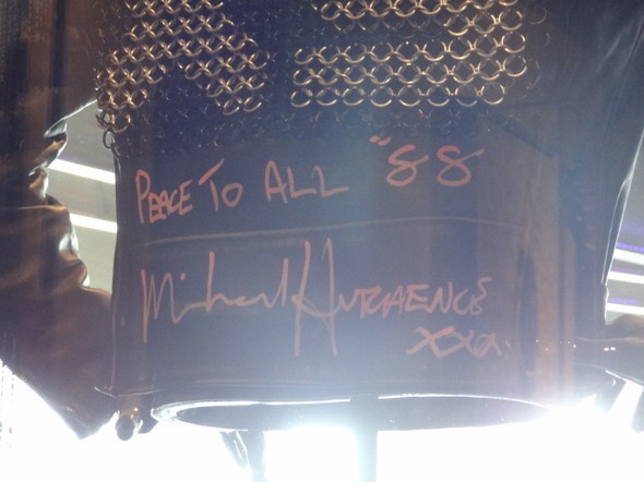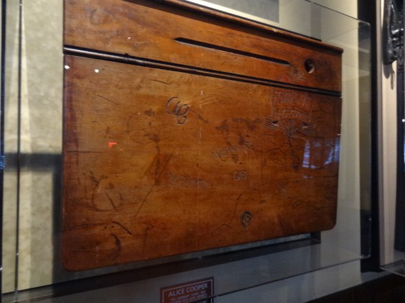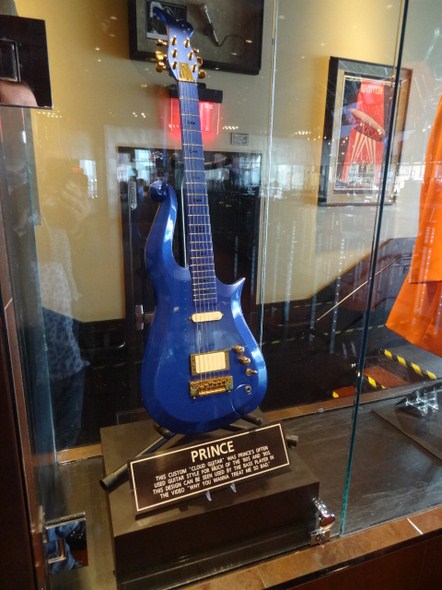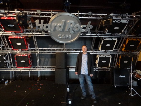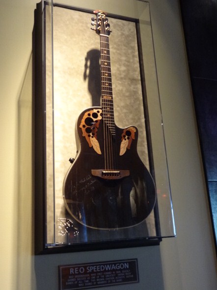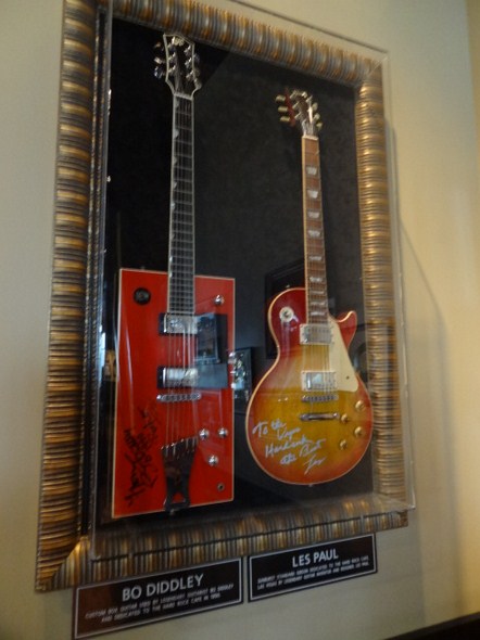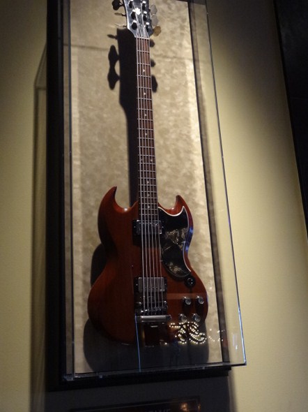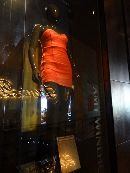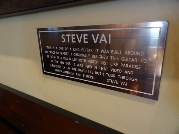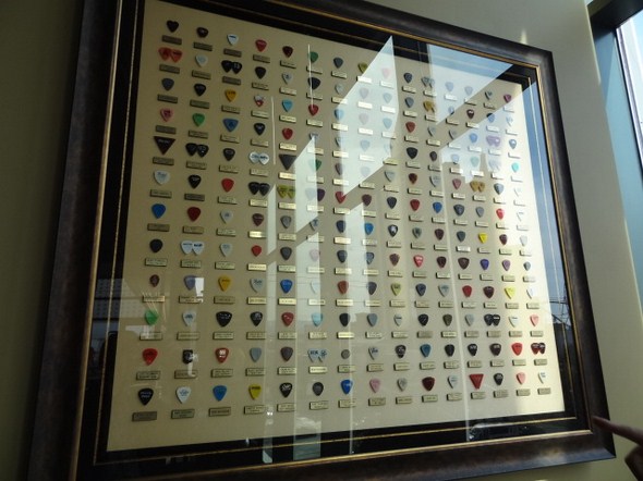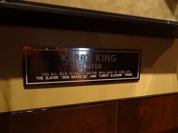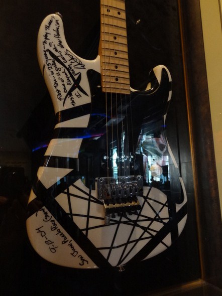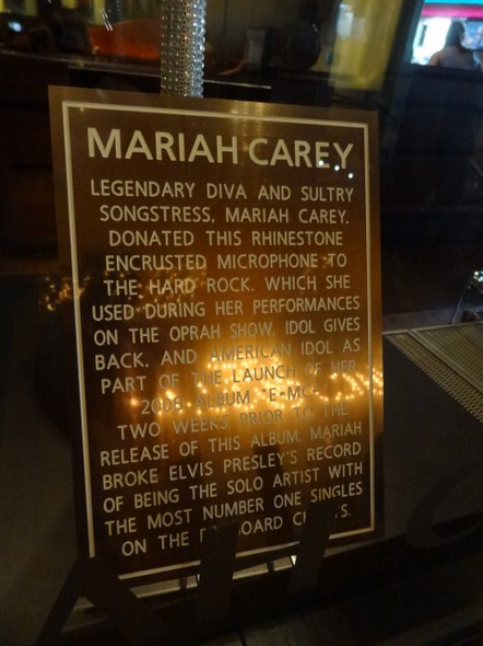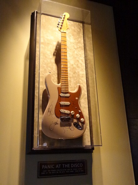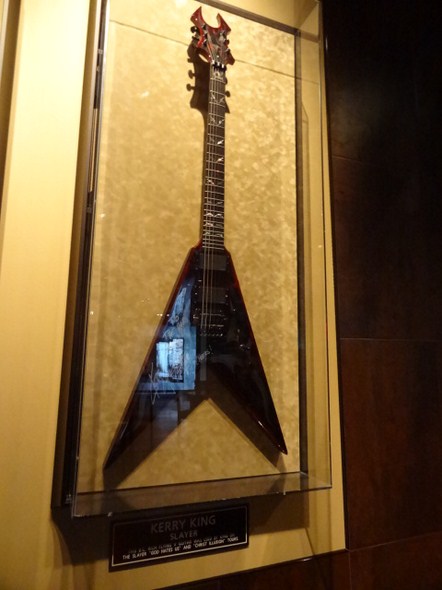 During my trip this past week to Las Vegas, I had taken an opportunity to check out the Hard Rock Cafe Las Vegas, and was treated to a lengthy private tour, so I thought I would share some photos of some of the material on display at this location, including stage and studio used instruments, wardrobe, and other rock and roll memorabilia.