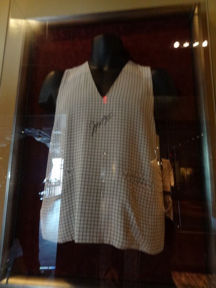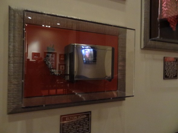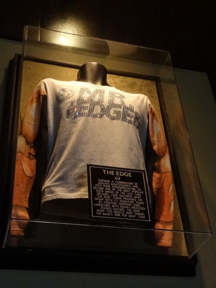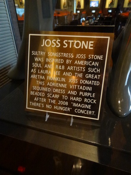 Below are some of the photos I took during my tour for the three story facility – the bottom floor is “for sale” memorabilia (i.e. Hard Rock branded t-shirts and other mass market collectibles), the second floor is the restaurant (with indoor and outdoor seating) with a large bar, and the third floor is the live concert facility, also with a dedicated bar. There is memorabilia on display on each floor, though most of it is found on the second and third floor.