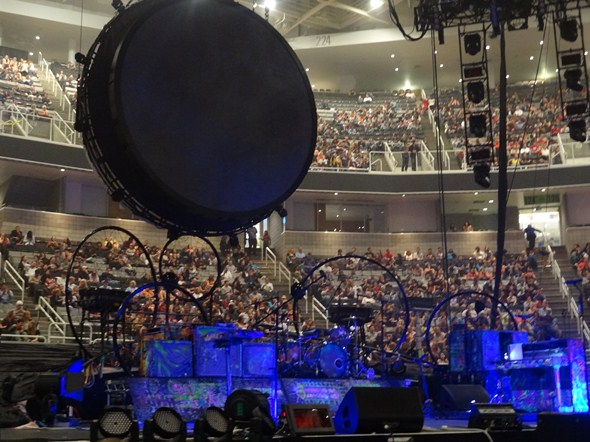 I had originally expected more shows/fill in shows in this first leg of the North American show (which began in Canada and is currently working its way down the left coast of the U.S.), but San Jose was ultimately the closest to my home, and sold out long ago. Resale prices for tickets on this show (on the secondary market) have been extremely high, so I actually anticipated not seeing them this go round. However, a pair of tickets popped up on StubHub last week for 4th row floor, so I decided to buy them. My friend Dianne, who lives in Los Angeles and has attended many Coldplay concerts (I think we’ve been at three of the same ones) actually drove up from Southern California to meet me in San Jose for this show and to use the second ticket. We met up with another fan for dinner, and ultimately missed both opening acts (Metronomy and The Pierces), so I cannot include any thoughts or photos from their performances.