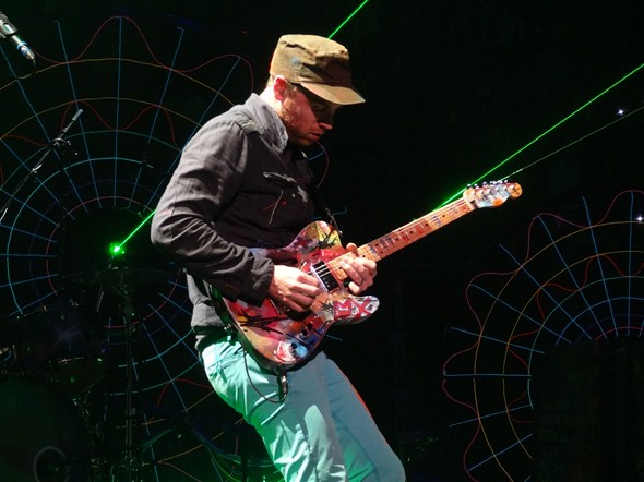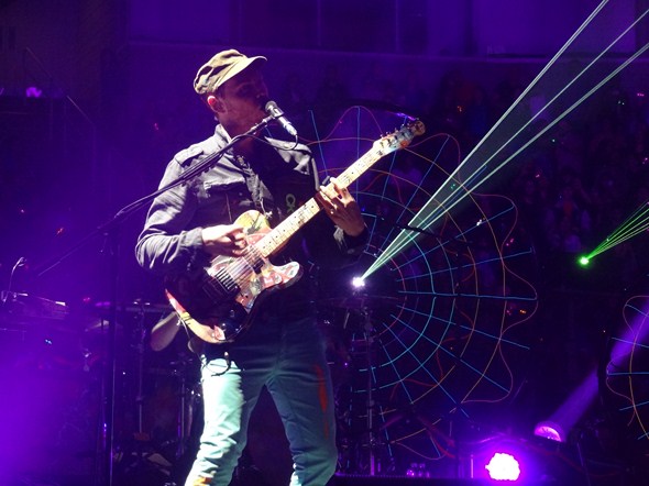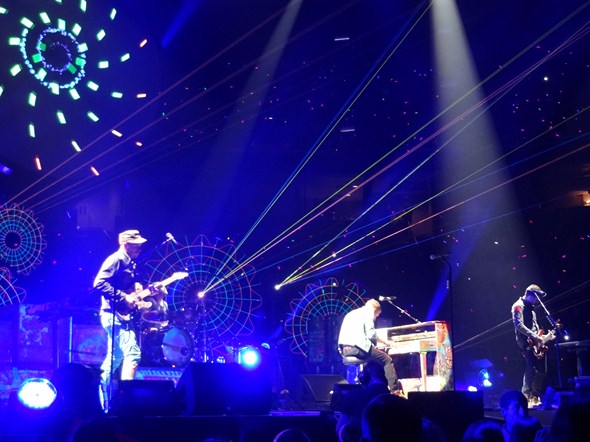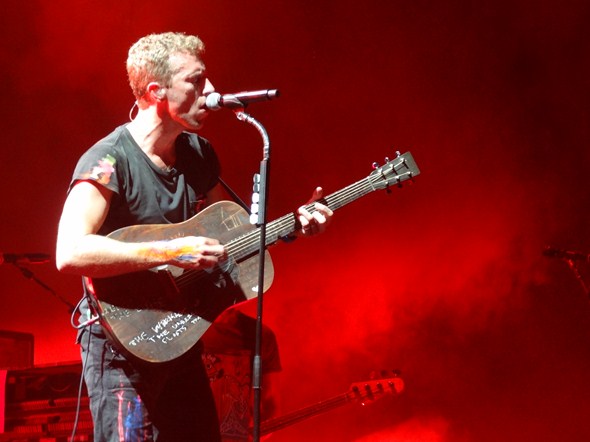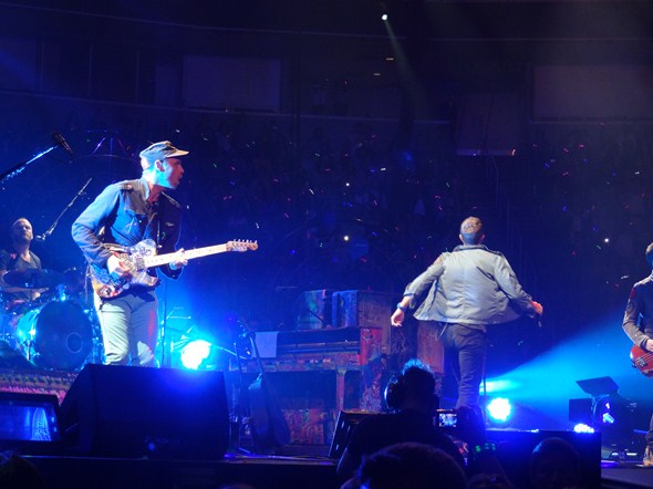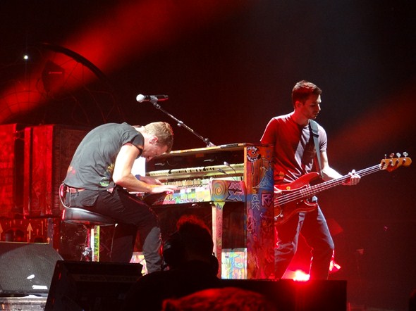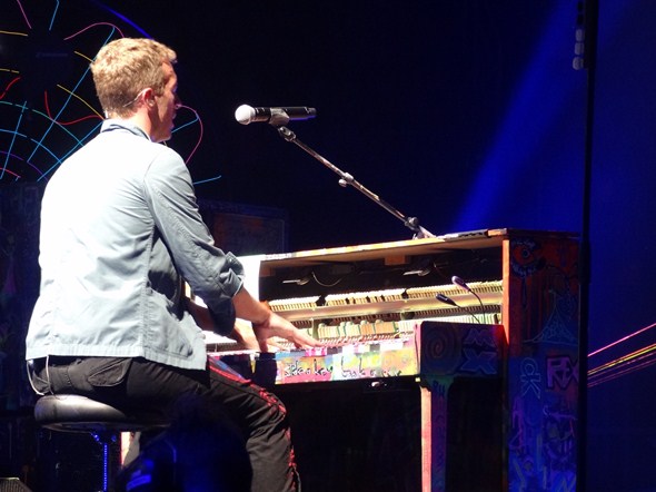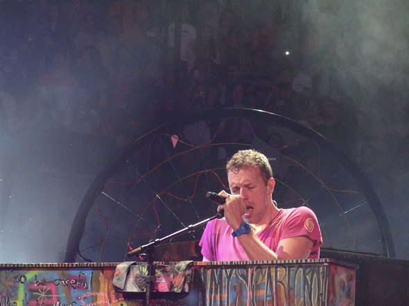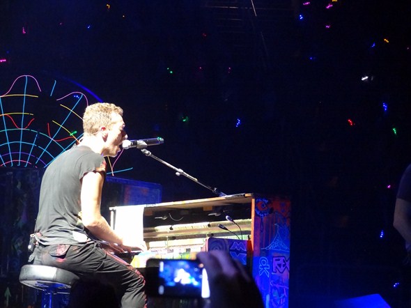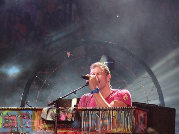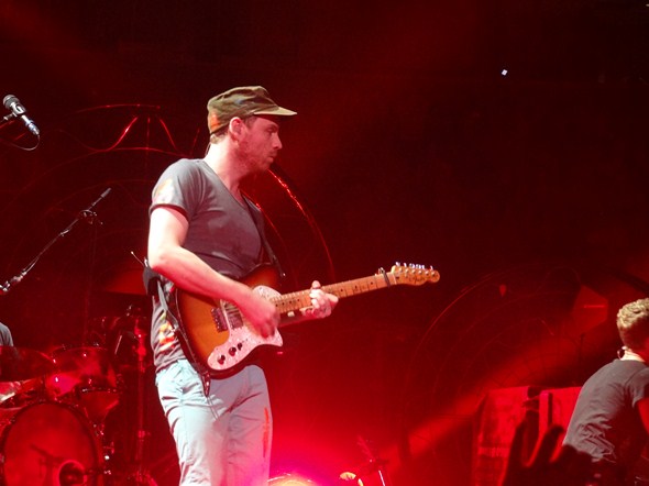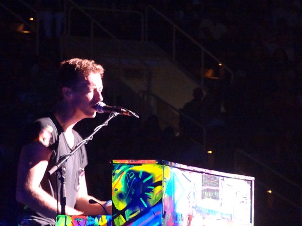 Having seen the band so much lately, there weren’t too many surprises with the show, as the other gigs, extensive festival run in 2011, and pre-Tour dates in Europe at the end of last year really served to build their formal Xylo Myloto Tour which is now in full swing. In addition to the cool light-up wristbands, there are some other elements which make the entire concert much more interactive – the bursts of endless confetti and giant bouncing balls, as well as performances on the “X” stage (at the end of the runway protruding out into the floor seating) and the “C” stage, which is something that started with the Viva tour and makes a reappearance here, wherein Coldplay leave the stage and play a song in a somewhat random area at the back of the venue, amidst the crowd. It was actually fun for me to look around and see other fans of the band experiencing all of this for the first time. There were also a good number of kids and younger fans in attendance, and given the number of years its been since the Viva la Vida Tour, it is certain this was the first time seeing the band perform live for many of them. As a performing group, Coldplay have not only a huge library of catchy and anthemic music, but understand how to provide entertainment and a unique experience on a number of levels. Once they take the stage, they really captivate the audience and create a memorable event.