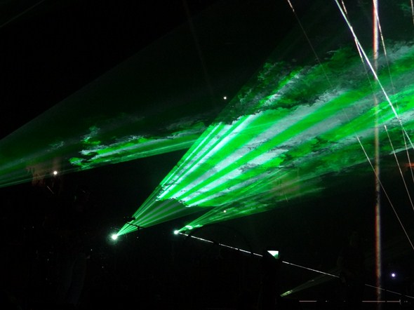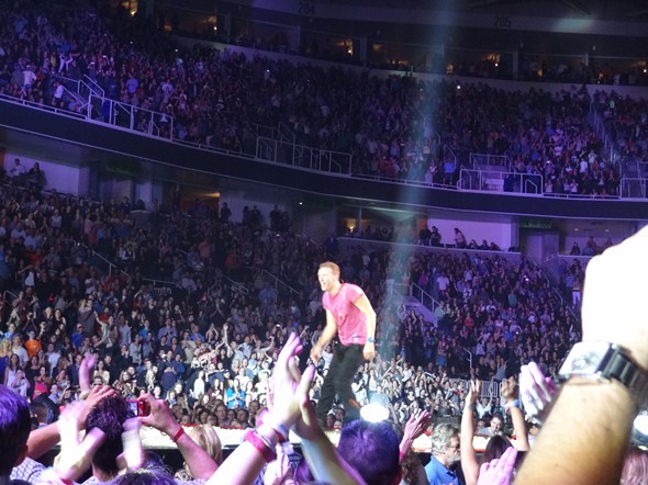 In any event, adversely, it was cool to see the giant stage with “X” runway, which gives Chris Martin a lot more room to run around and perform. So that stage is absolutely massive compared to the small space in Club Nokia; in fact, the foot print of the entire stage may be around the same size as the footprint of the entire venue at Club Nokia, so it’s just a totally different type of concert, with last night’s obviously being on a much more grand scale.