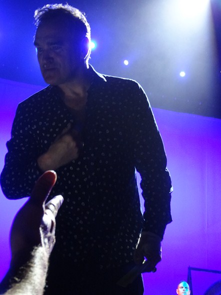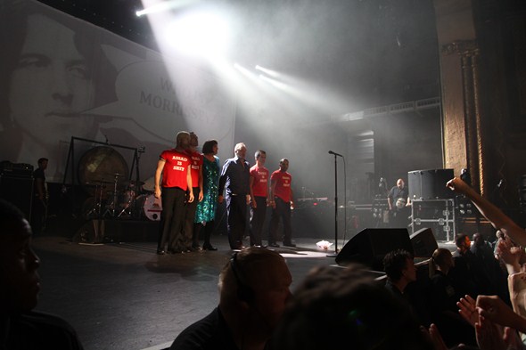 But the one really special thing that struck me about this show is the notion that a hugely popular artist like Morrissey would call out a fan by name, hand him the microphone, and turn the show over to him. And if you look at the (jump) graphic at the top of this article, that is Morrissey listening intently (and counter to his persona, with joy) to his most ardent fans. How cool is that?