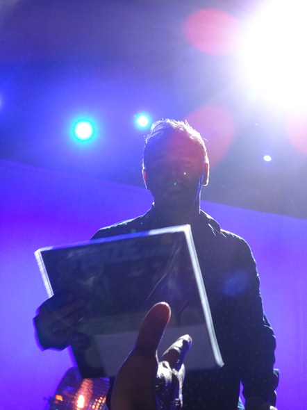 In any event, once Kristeen Young cleared the stage, there was a mad dash for the space between the front row and the barricade in front of venue security. I expected them to be ordered to return to their seats (which happened when the venue opened), but more and more people poured in from their seated area. They then dropped venue security back, and allowed a select number of people to drop down into a sunken pit area up further.