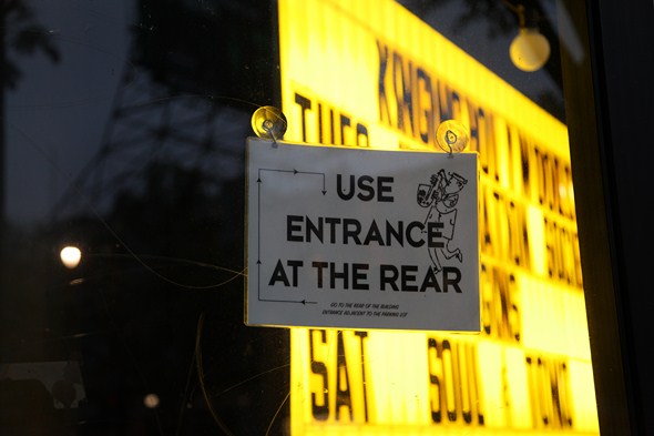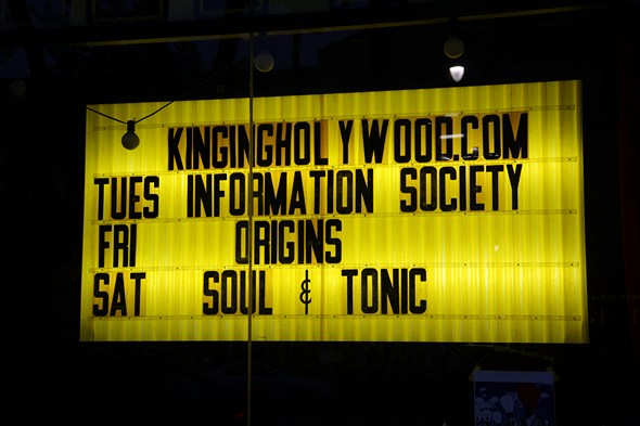 As for the gig itself, it was moved from the original location at the Complex in Glendale to King King in Hollywood in recent weeks, and I’d never been to either. King King is in the heart of Hollywood, just a stroll from landmarks such as Grauman’s Chinese Theatre, Hard Rock Cafe, The Kodak Theater, El Capitan Theater, and the Roosevelt where I decided to crash for the night. Once I found it, well, it required some signage to figure out what to do next, as the entrance is around the back, and the front of the space has the street side glass all blocked out (as it is essentially the back of the stage, once you get oriented inside).