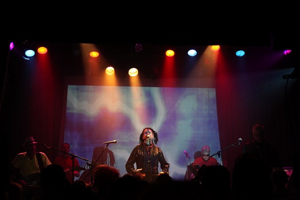 The band opened with an intro tease of “Peace & Love, Inc.”, then moved with great energy through a pretty varied set that covered material across their catalog. There was definitely a very friendly vibe in the air, as the crowd was very cool and forgiving in allowing people to navigate around in the fairly moderate-sized club. I usually stake out a spot close up and never move, but with this show, I made my way from one side stage area to the back to the other… and back again a few times, trying to get interesting shots of the band from different vantage points. There was really not a bad spot in the place, and it was a real joy to see them play live again.