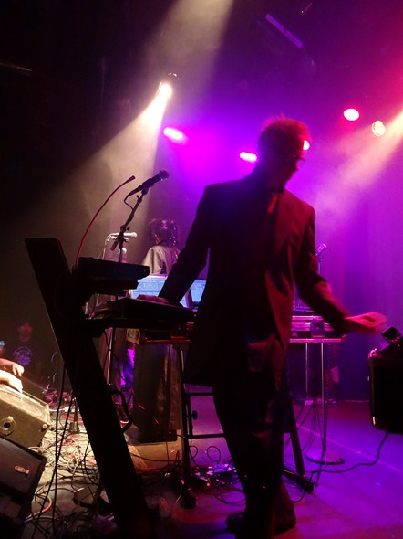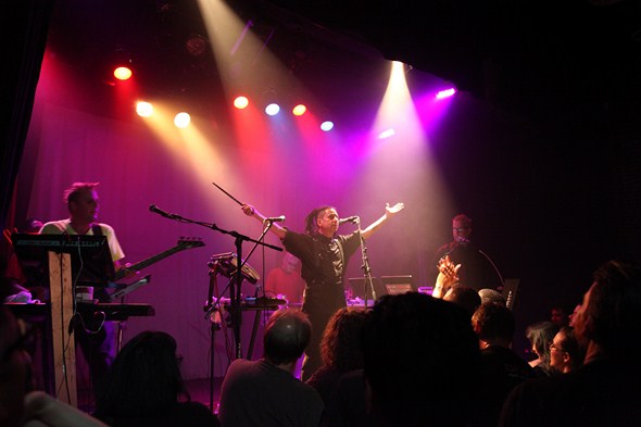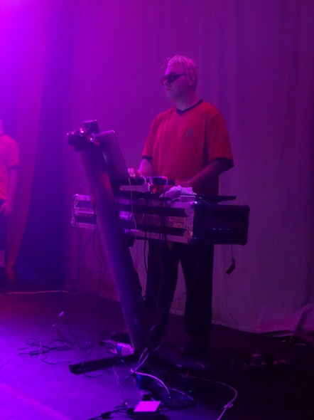 Information Society followed, with founding members Kurt Harland, Paul Robb, James Cassidy in front with two “red shirt” members (a la doomed Star Trek crew members) at the back of the stage (Mike Wimer and Zeke “Falcotronic” Prebluda), and special guest vocals on one song by Leila Mack of Friendship 7.