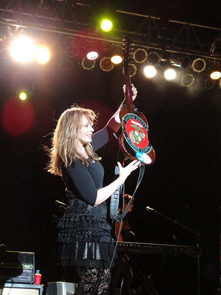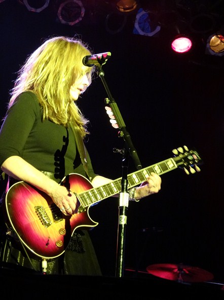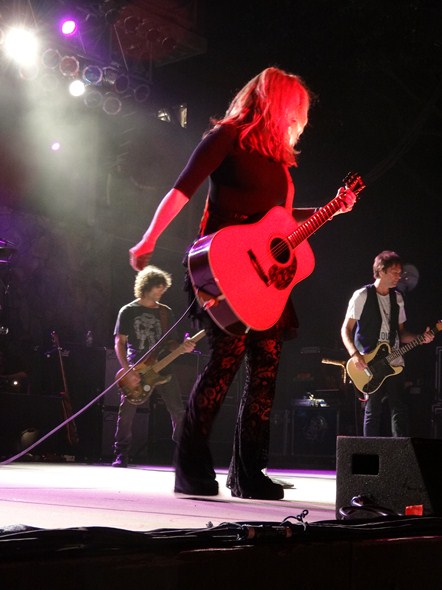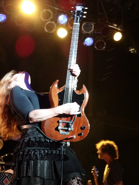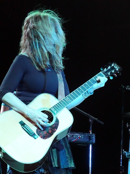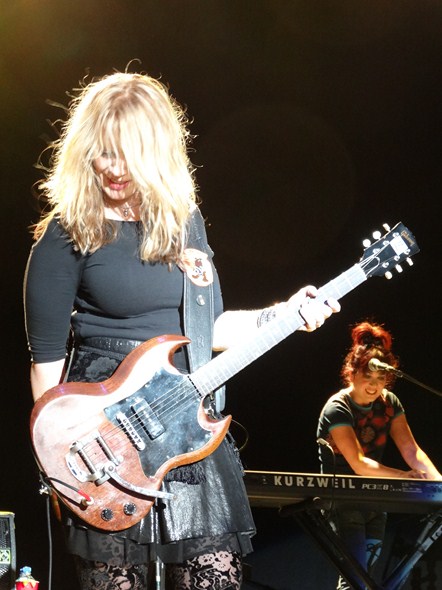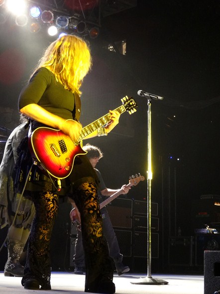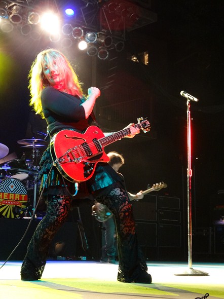 Nancy Wilson has such a stage presence, I was completely enthralled and fascinated watching her on stage. It is so unusual for a woman to bring such a femininity to rock music, but still have rock and roll gravitas, but in a completely female form. She is so singular in her on stage persona. For me, she is so beautiful and graceful, it is almost like watching rock star performance art, and it all seems to flow from her so naturally, and so completely fits and suits their music, it is really something to behold. Since I was standing right in front of her, I was able to take some really nice photos, but still images really don’t capture her amazing on stage movements and energy. The fact that she has such an amazing ability to play guitar (both with softer songs and the real hard rocking ones) as well as sing is just awesome.