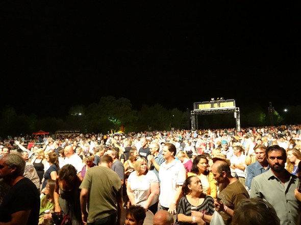 Having never been to the concert venue, which is part of the winery property, I wasn’t too sure what to expect, so had the Mountain Winery venue in mind. However, Ironstone is quite different (the only similarity being that both are wineries with outdoor venues). Mountain Winery has quite a small stage, that is just a few feet off the ground, while Ironstone has a very large stage that is pretty high off the ground. Also, Mountain Winery has a much smaller seating area that is more rounded and steps up and up and you go back into bleachers, whereas Ironstone is decidedly flat as you go back, and much, much bigger. In any event, I really loved the venue and plan to check out more shows there in the future if I have the opportunity.