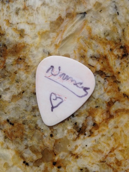 I was also lucky enough to get a memento from the show – a stage used guitar pick used and autographed by Nancy Wilson: