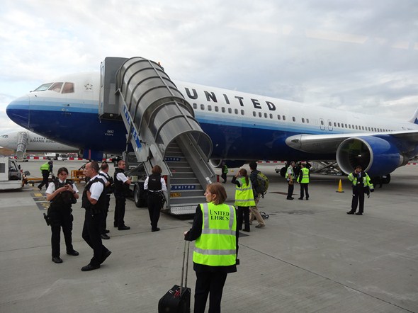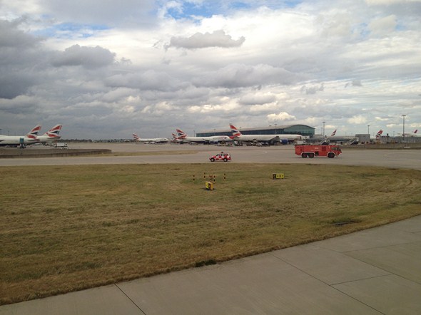 This is my personal account as a passenger on United Flight 959 on Monday, August 27, 2012, scheduled for travel from London at Heathrow Airport (LHR) to Chicago at O’Hare Airport (ORD), where I would have boarded a connecting flight back home to Sacramento (SMF). After departing from London, the plane experienced equipment malfunctions related to engine problems, and returned to Heathrow for an emergency landing, utilizing just one of two engines, after which the landing gear reportedly caught fire (though there are conflicting accounts on this) on the runway and the landing gear and overheated engines were extinguished by ground crew. A harrowing experience, and one of the only news stories that I could find about this specific incident lacked details, included one photo, and had a one line statement from a United spokesperson (“United Airlines’ flight UA959 bound for Chicago returned to Heathrow on Monday after experiencing an unexpected engine surge; [t]he aircraft landed safely and without incident“). I thought it would be appropriate to memorialize the experience from the point of view of a passenger on the aircraft. According to international news reports, this flight was the third in ten days that had engine problems resulting in emergency landings for the carrier.