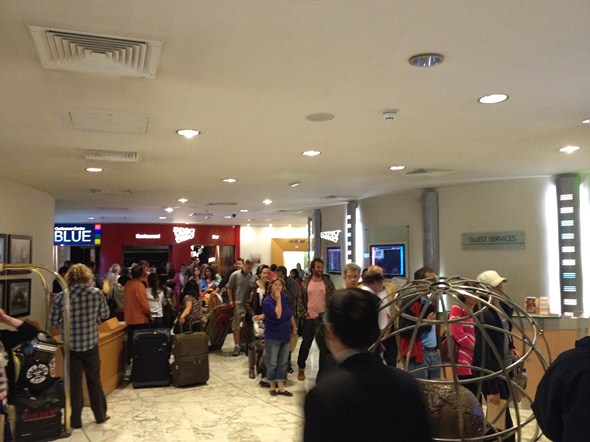 We were then put on motor coaches to a local hotel, which was a bit of a debacle. The driver left us at the wrong side of the hotel, which resulted in a five minute walk to the front desk, and they only had two employees to check in hundreds of passengers. I went past the lobby at least an hour after I had checked in and the line still wrapped around inside the front desk area…