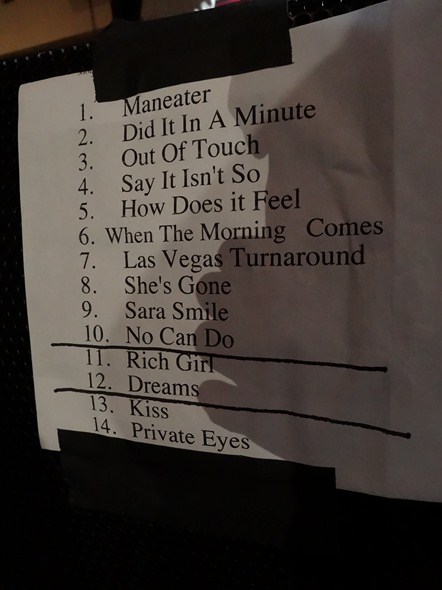 Some of my favorites that weren’t included last night… “Do What You Want, Be What You Are”, “You Make My Dreams”, “One On One”, “Family Man”, “Adult Education”, “Method of Modern Love”, “Everything Your Heart Desires”, “It’s Uncanny”, “Cab Driver”, “Had I Known You Better Then”, “Abandoned Luncheonette”, “Getaway Car”… well, I guess I could create a set list for another full concert really easily.