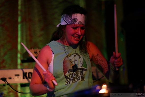 In addition to the role-switching on stage, they are a lot of fun to watch, and watching Tosha on drums is kind of intoxicating, as if every part of her is just tuned into that beat and pushing it as intensely as possible.