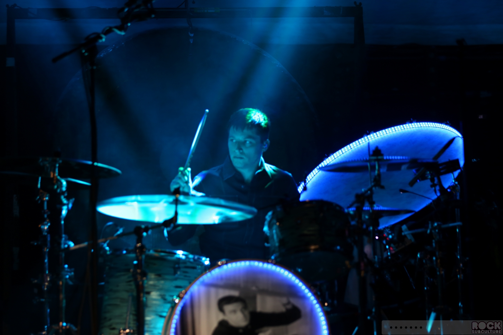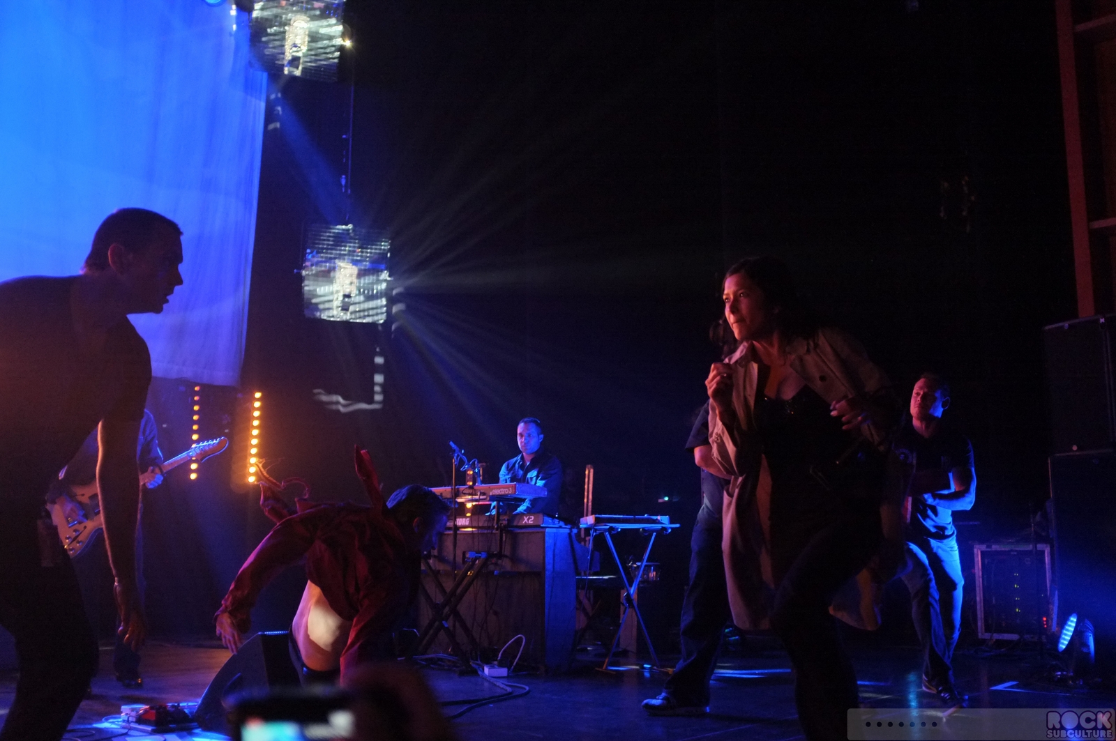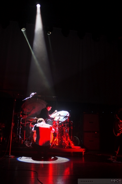 I had purchased a front row seat in center orchestra long ago, and also had a photo pass to shoot the show with my pro cameras, so was lucky enough to be right up front. Though it was a seated venue, people were already lined up standing against the low stage before Kristeen Young had come out. Security was letting anyone with an orchestra ticket in the first half dozen rows or so stand up in front of the stage, in-between the front row and the low stage, which allowed for people to line up about 3-4 people deep, going across the fairly wide stage, left to right.