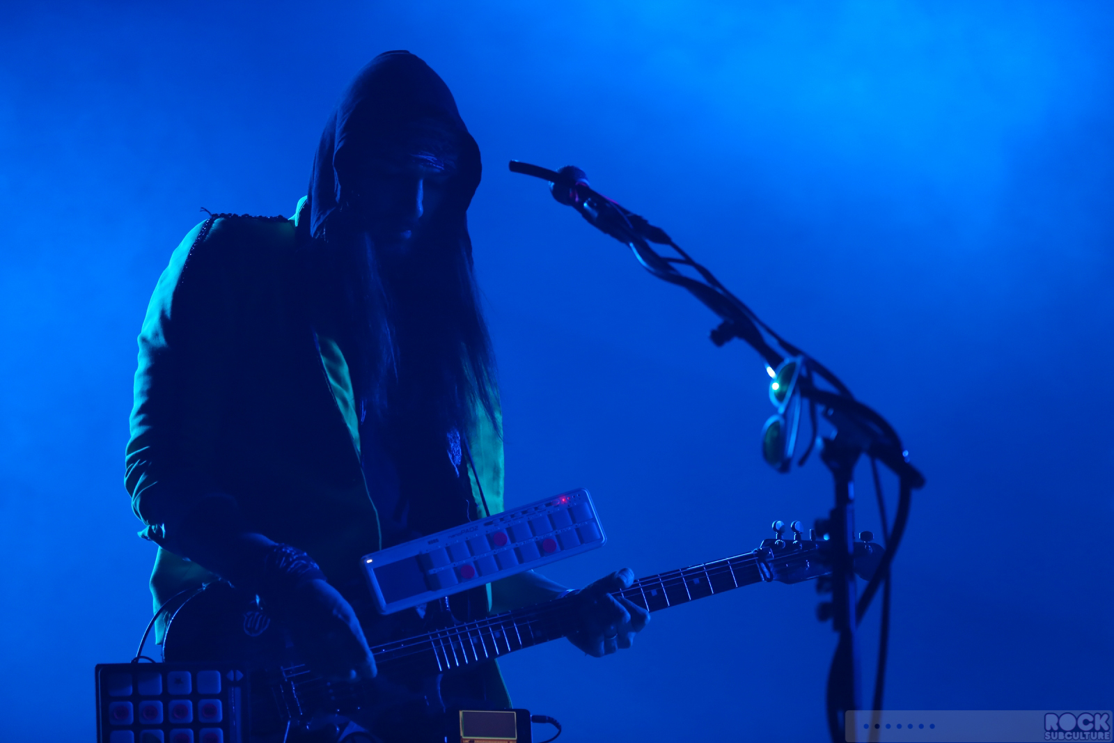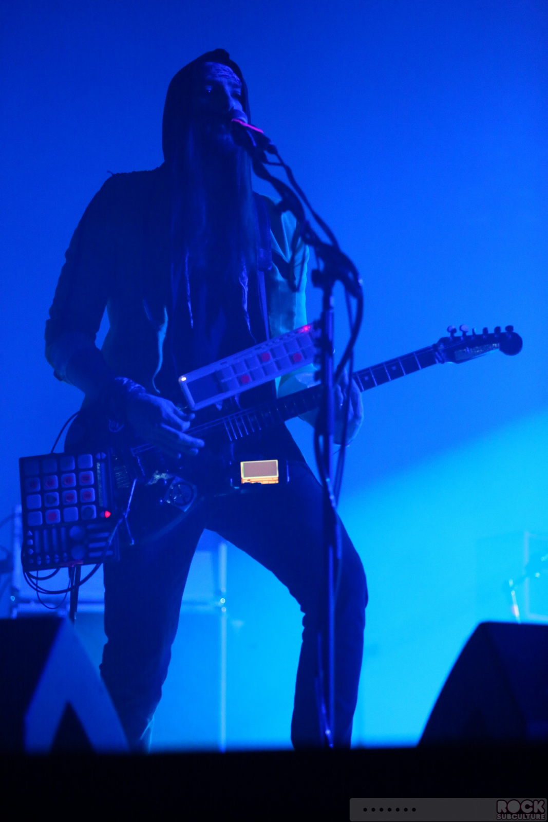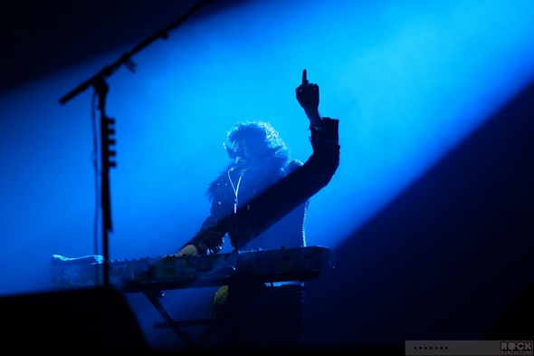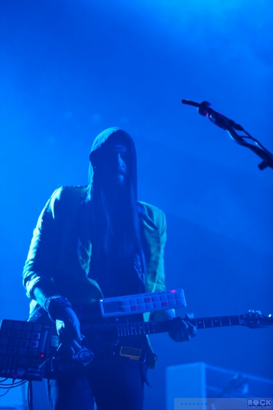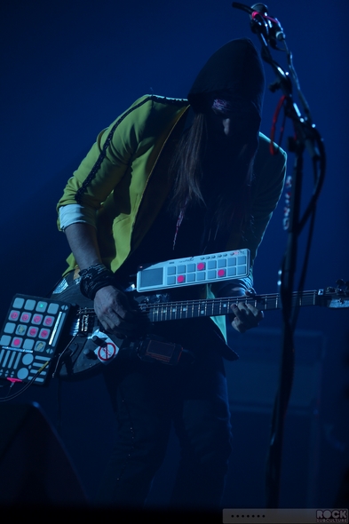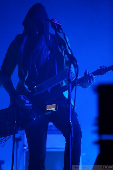 Real eye candy is the crazy-bizarre guitar-looking instrument played by his guitarist, which looks like something that is part Mattel, part Nintendo, both circa the mid to late 80s. Whatever the heck it is, amazing custom sound comes out of it, and at times during the set, it was just he and the drummer blazing away so hard nothing else was needed – I could have listened to them jamming for hours.