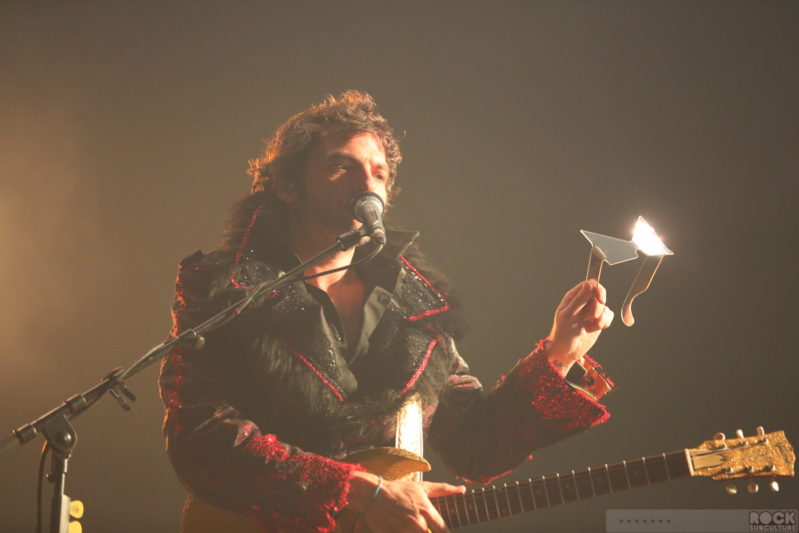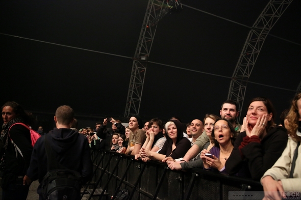 One of the highlights of the set was when -M- went crowd surfing on his back while playing guitar, as the audience gently glided him back quite a ways into the standing-only space, and then with perfect timing with the song carried him back toward the front of the pit and over the railing so that he could run back up and finish the song just up at the top of the stage. But then, that seems to be the intuitive and symbiotic relationship that he has with his fans – they know what he wants, and he knows what they want.