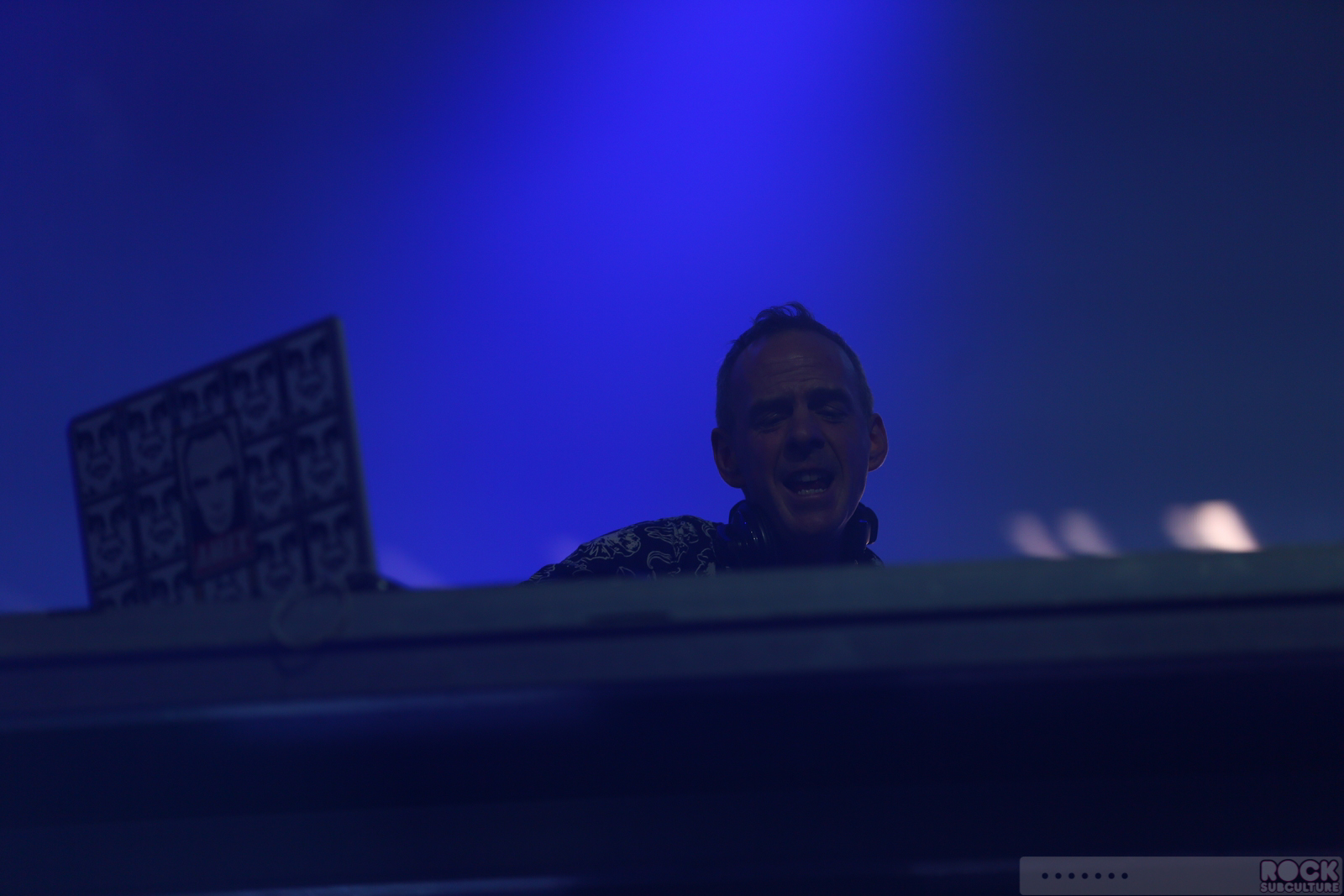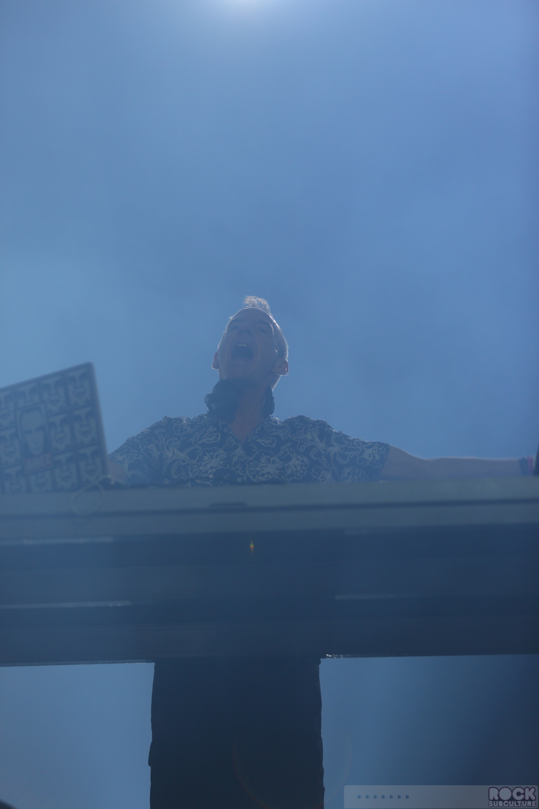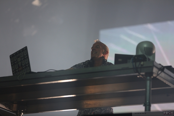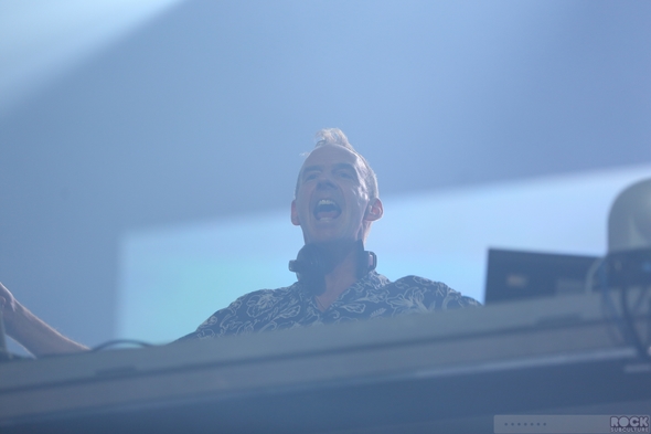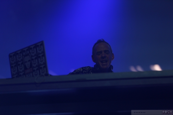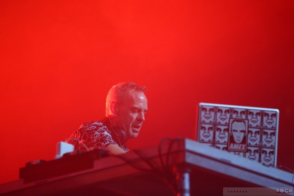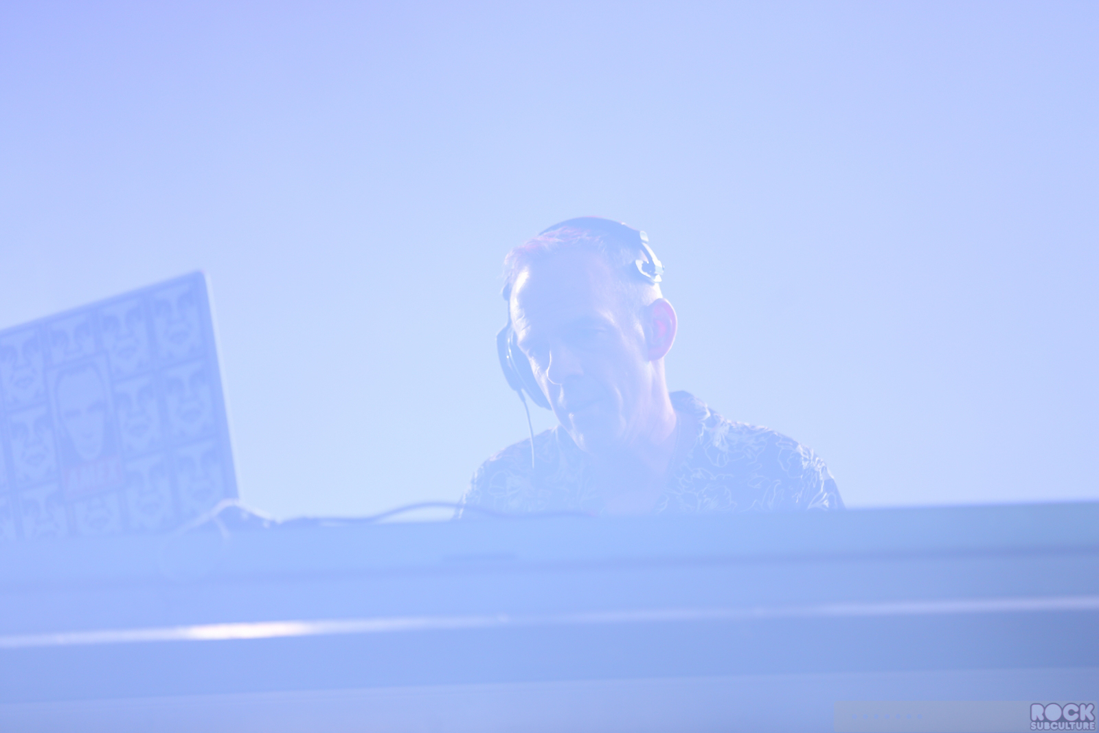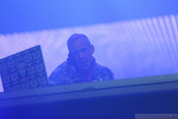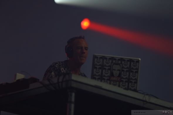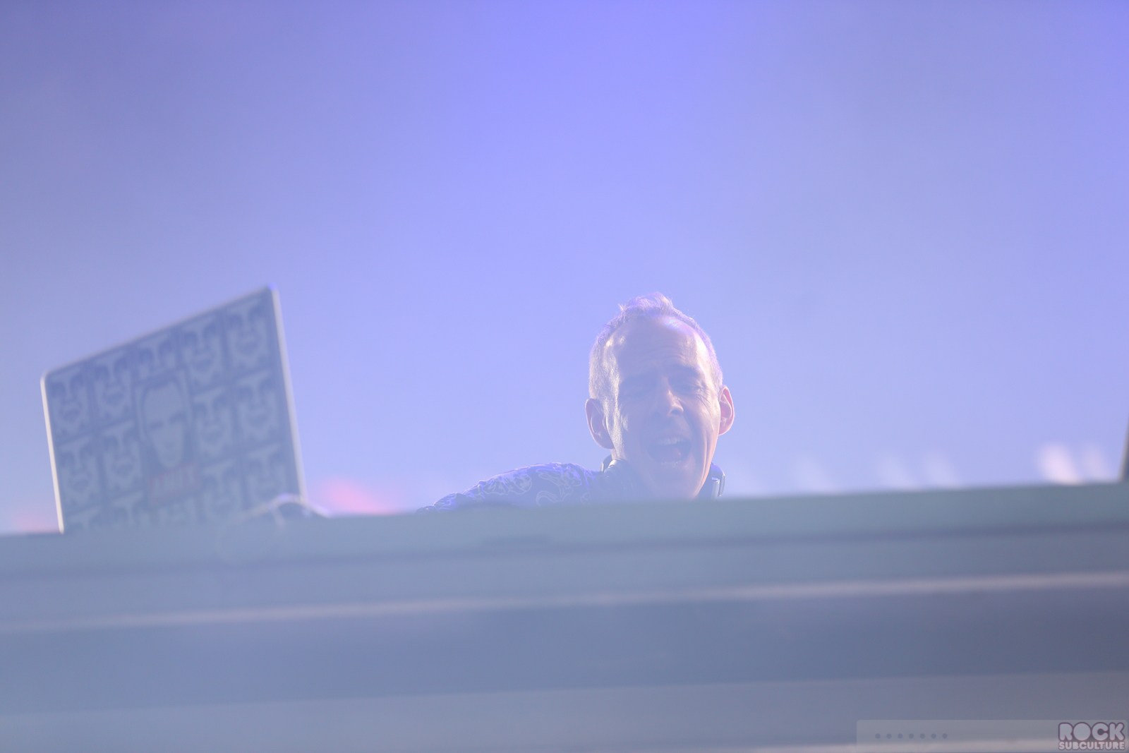 Since I had the honor of shooting this show, and covering Fatboy Slim’s set, I had a unique opportunity to see him as work fairly up close. Even still, given the height of the stage and position of the table holding his equipment, there wasn’t much to see. Honestly, he could have been making sandwiches for all I knew. A real Wizard of Oz.