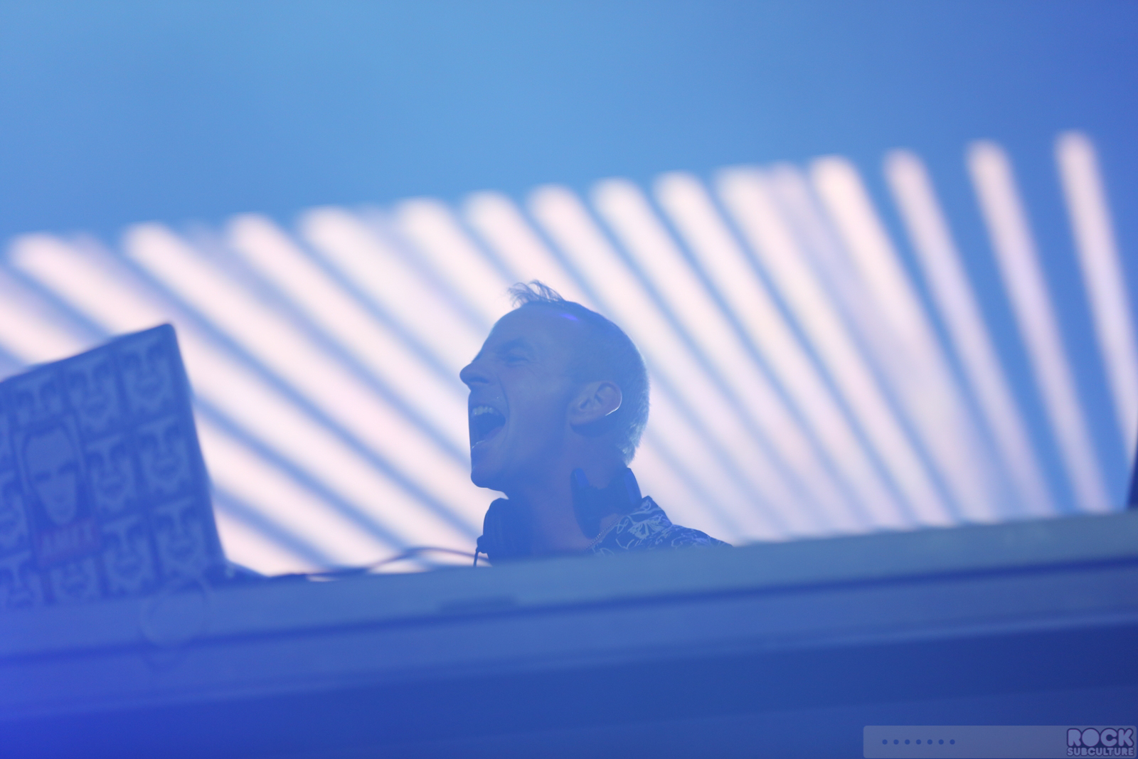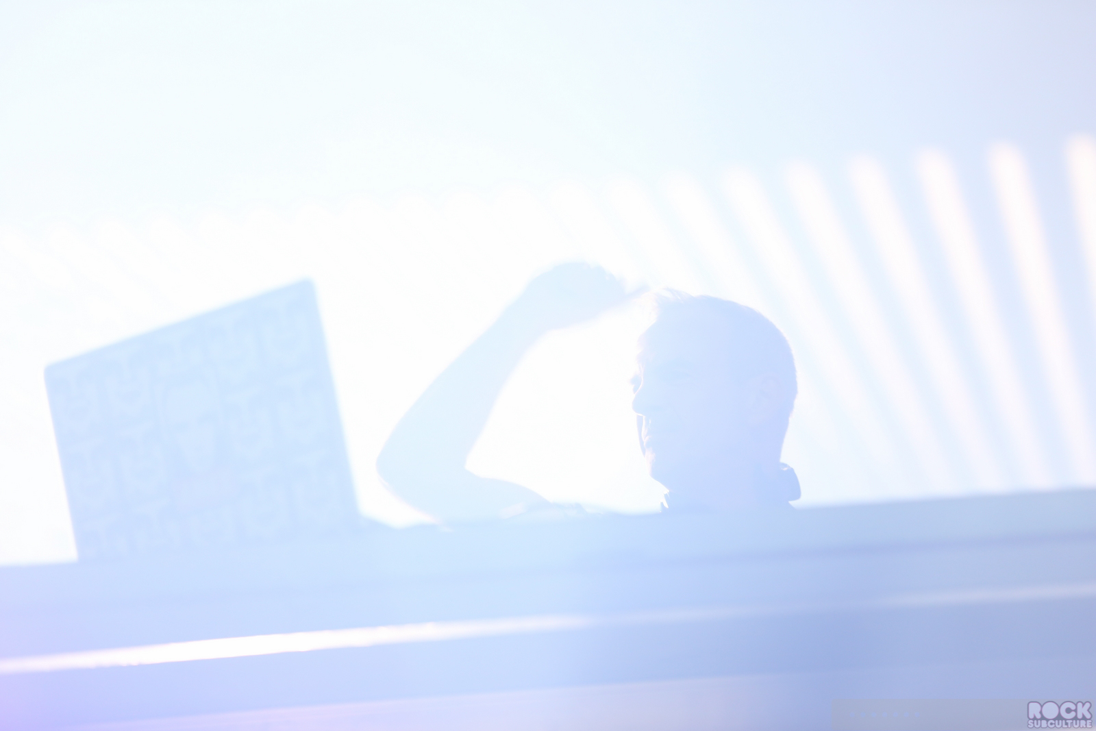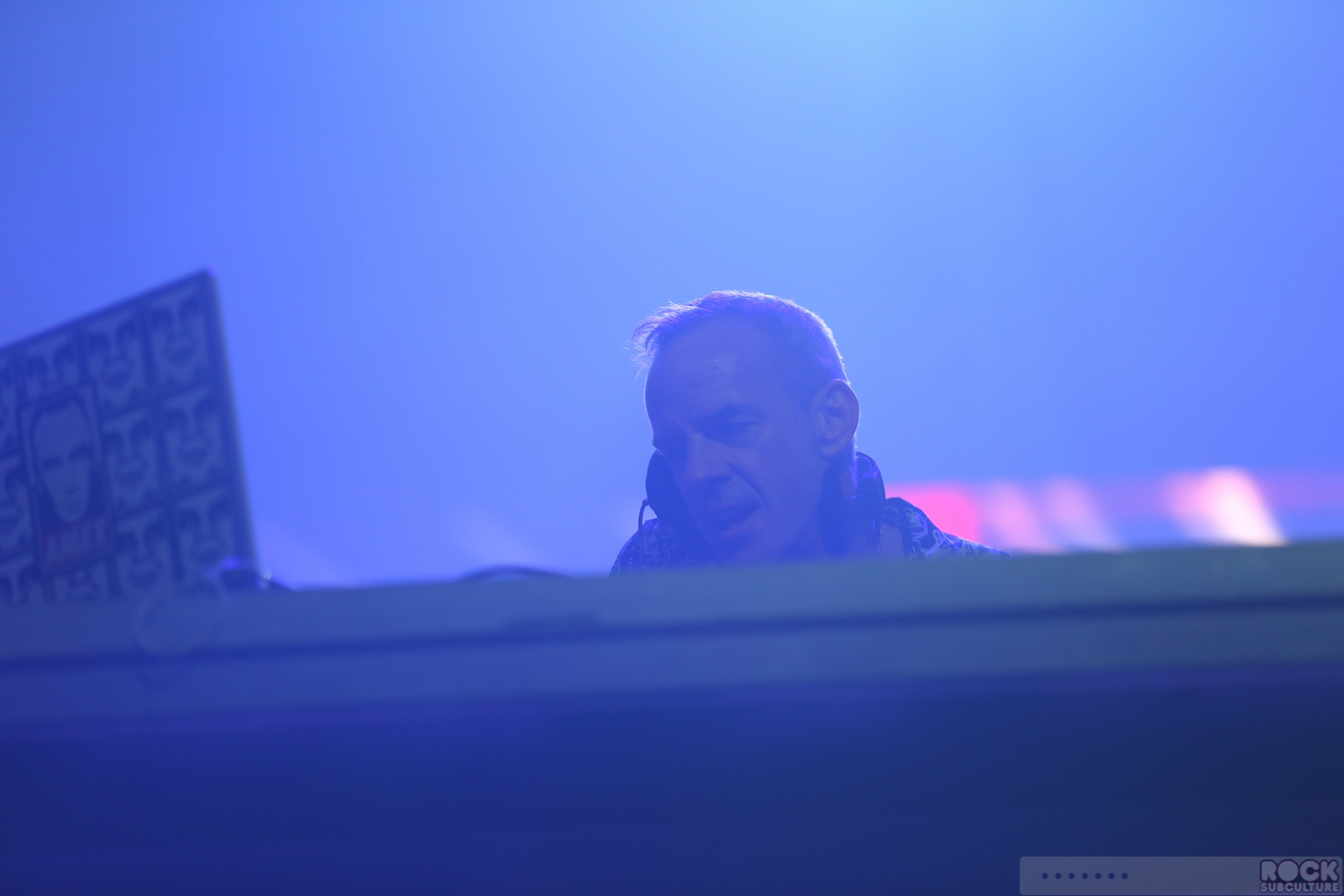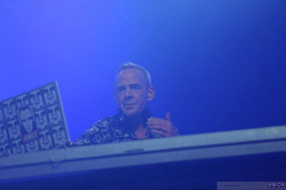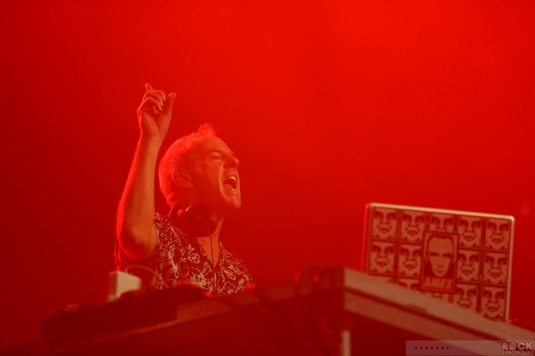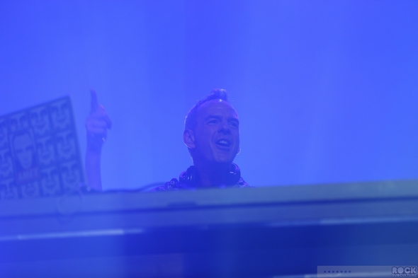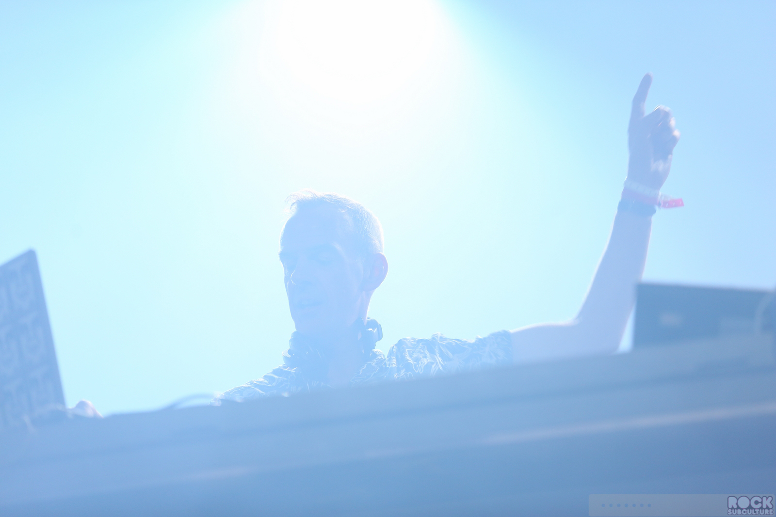 Since I had the honor of shooting this show, and covering Fatboy Slim’s set, I had a unique opportunity to see him as work fairly up close. Even still, given the height of the stage and position of the table holding his equipment, there wasn’t much to see. Honestly, he could have been making sandwiches for all I knew. A real Wizard of Oz.
