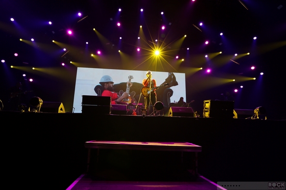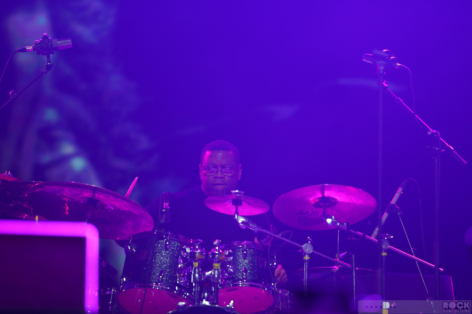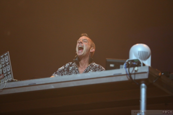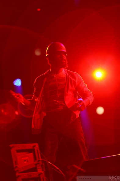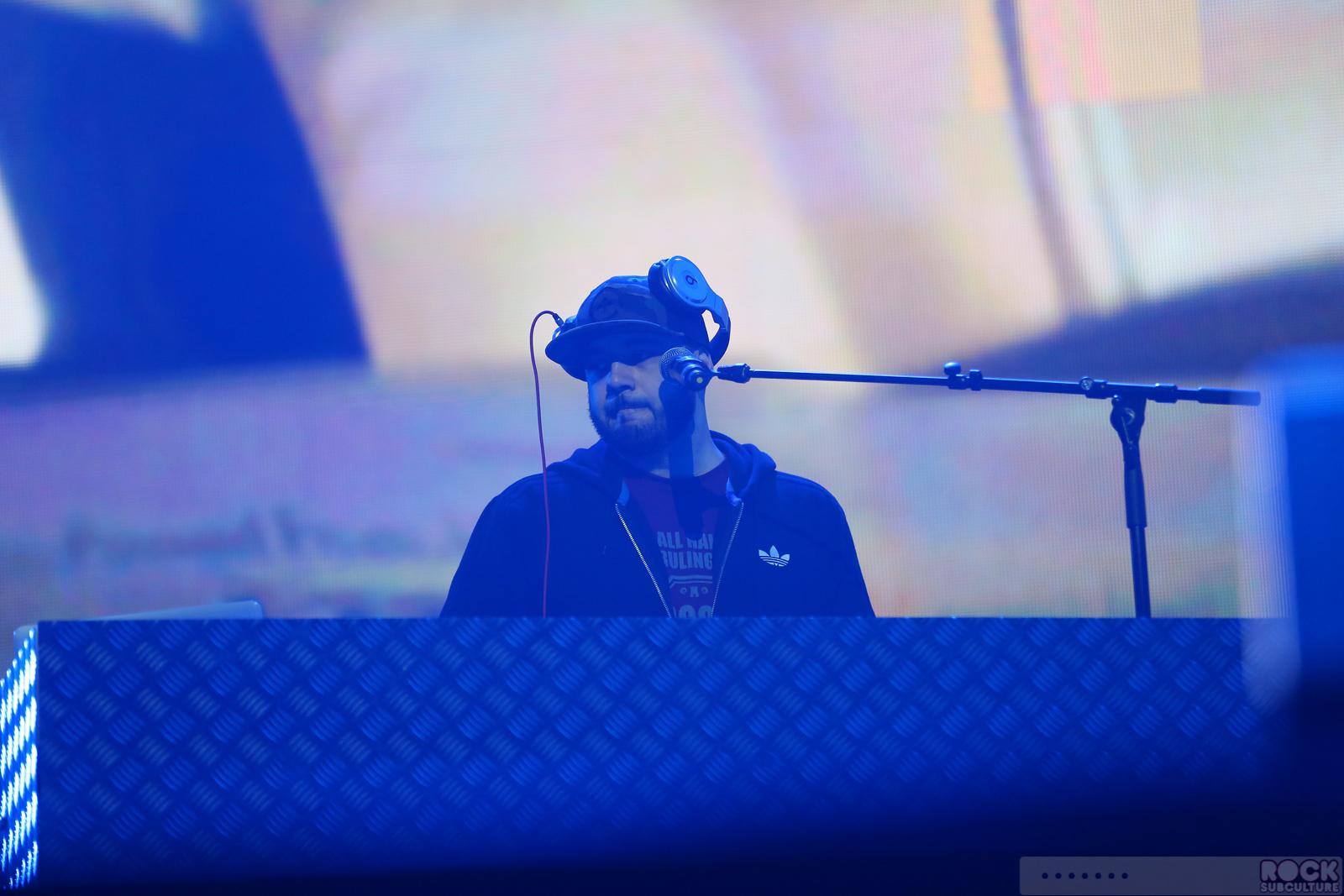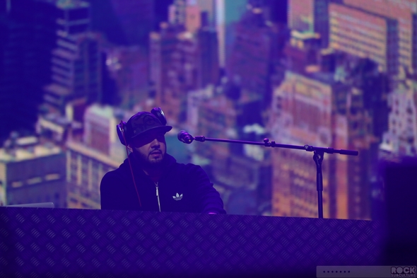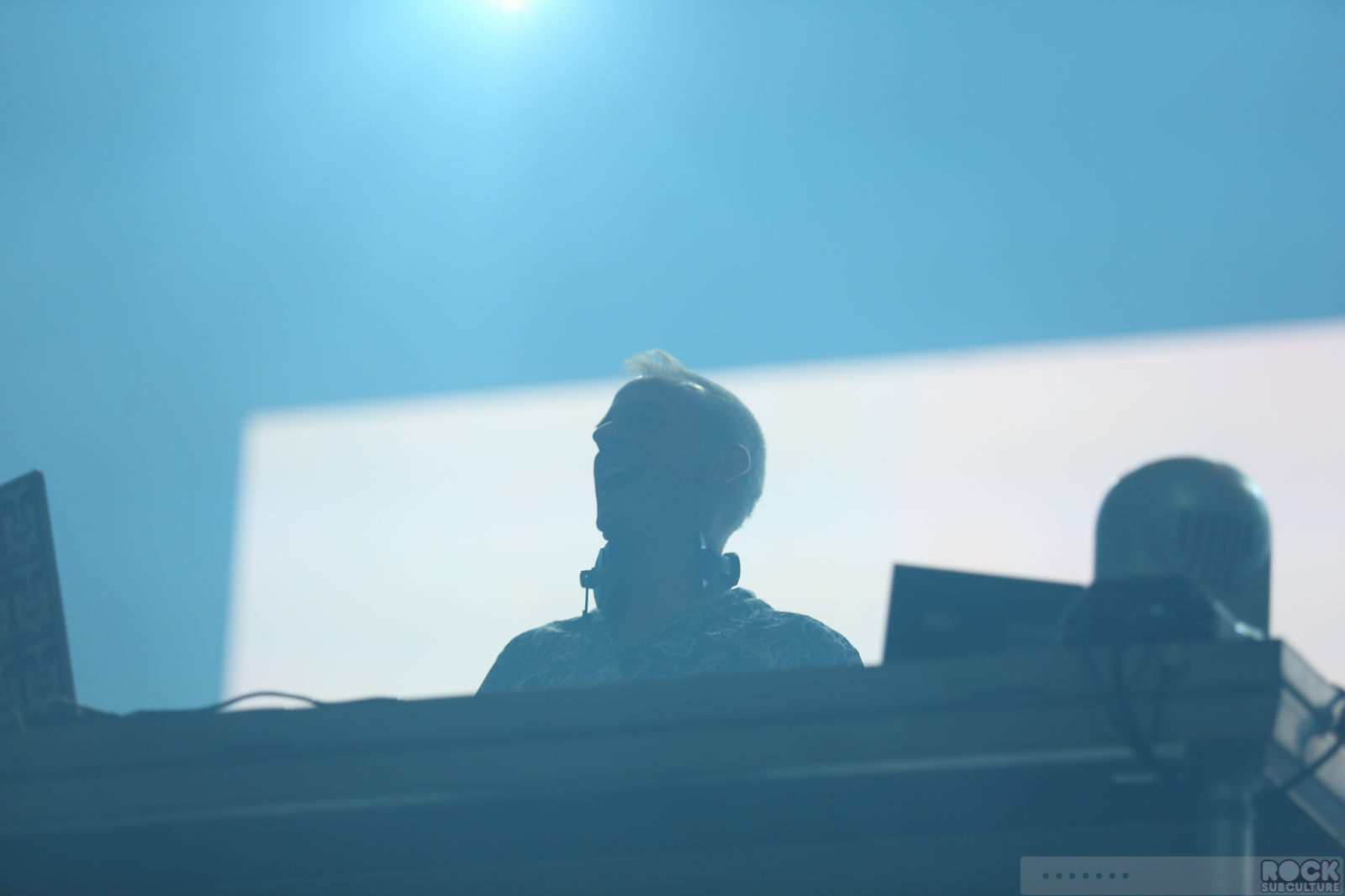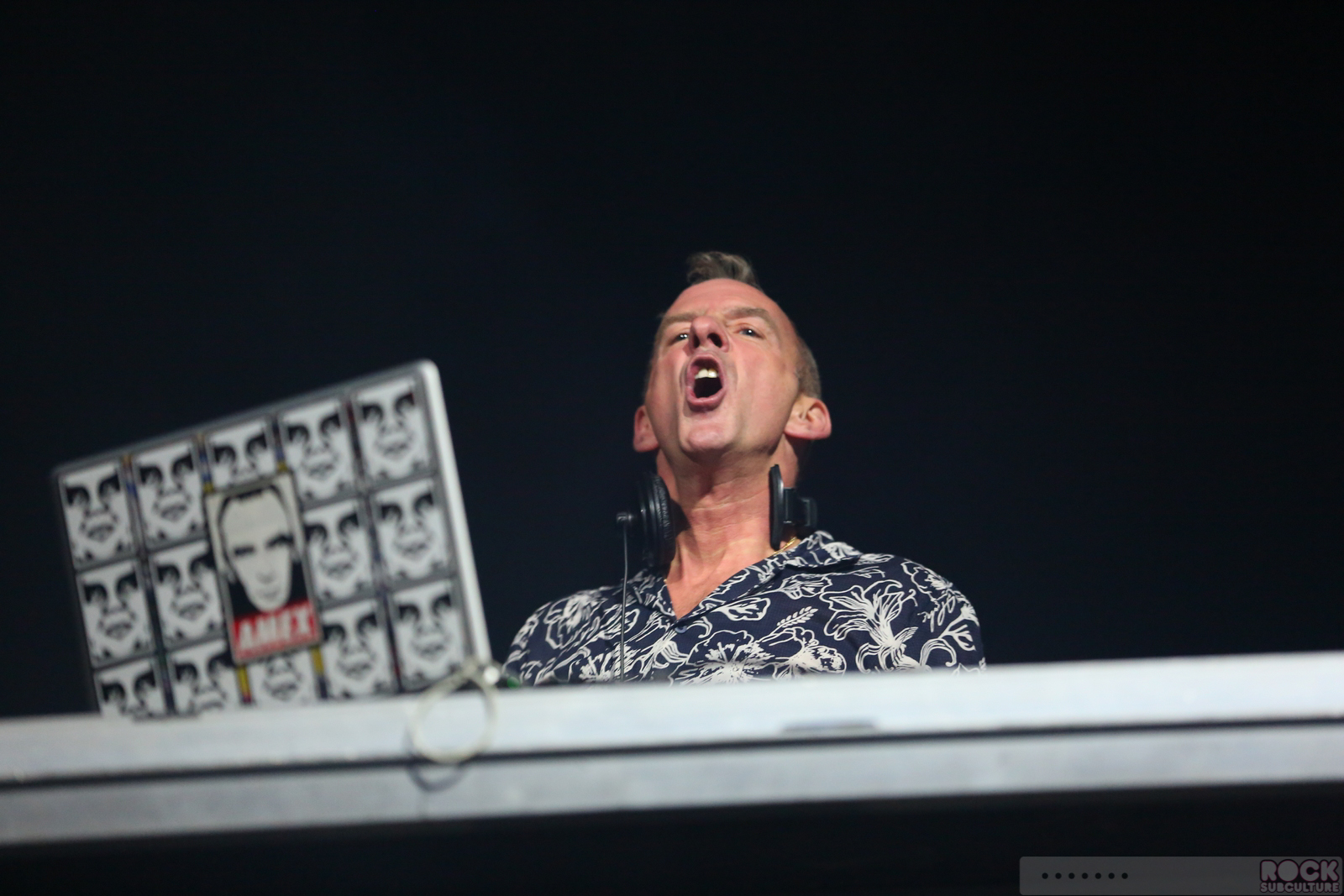 Since I had the honor of shooting this show, and covering Fatboy Slim’s set, I had a unique opportunity to see him as work fairly up close. Even still, given the height of the stage and position of the table holding his equipment, there wasn’t much to see. Honestly, he could have been making sandwiches for all I knew. A real Wizard of Oz.
