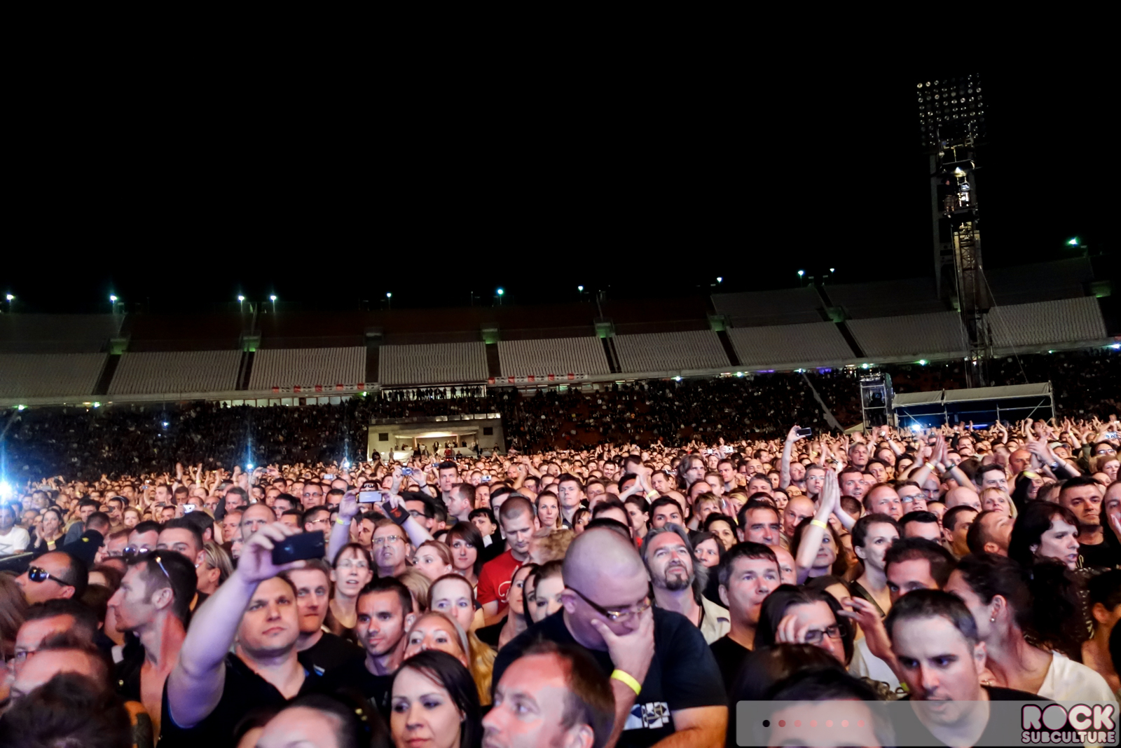Well, it’s a challenge for me to be objective on this one, as Depeche Mode is my all-time favorite band. I will be covering a total of five concerts on this European Leg of their Delta Machine Tour, which officially kicked off in recent weeks. First on my itinerary last night was their date in Budapest, Hungary at Puskás Ferenc Stadion, which is a massive outdoor stadium. Depeche Mode is touring to promote their new album, Delta Machine, which I have really enjoyed, and the set list for this tour includes a sampling of tracks from that new album as well as favorites from their huge body of work going back decades (a few reworked quite well). The band certainly has a loyal fan base in Hungary, as there was a sizable turn out of very dedicated fans (I lost count of the number of tattoos I saw with Depeche Mode-related art). They sounded incredible, and put on a great show with Dave’s typical high energy and beaming stage presence. Highlights for me included “Halo” (in my opinion one of their very best songs, and not recognized as such to the extent in which it should be) and the show closer, my favorite song of all time (from any band), “Never Let Me Down Again”. A fantastic evening and I’m more than thrilled to follow them around over the next two weeks, going to the shows in Zagreb, Croatia, and Bratislava, Slovakia, and then back to back shows at the O2 in London, England. In my opinion, this is the tour of the year, but again, I am pretty predisposed to that opinion.