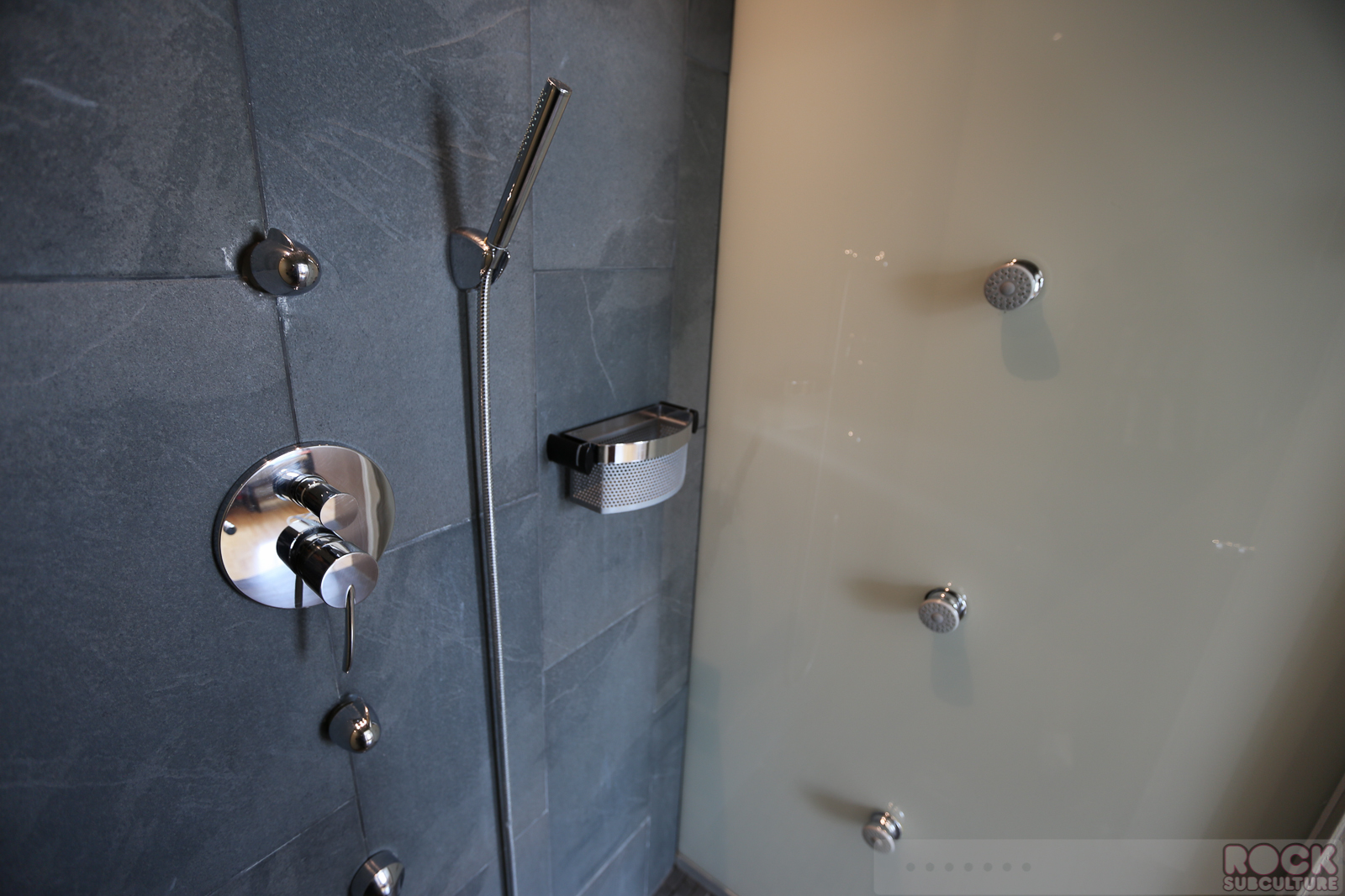 One of the highlights of the room for sure is the shower, which has options to turn on many, many showerheads, some on the side and one large rain-type overhead. It is like a car wash for people.
