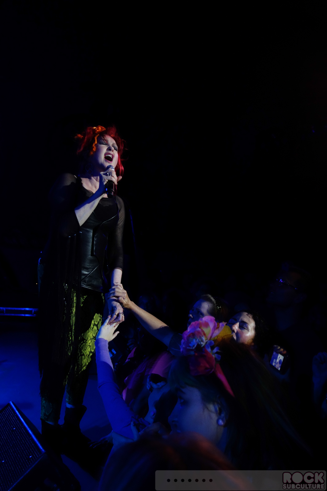 The greatest artists are always brilliant storytellers, in one way or another, and there is no doubting that Cyndi Lauper is a great communicator. I’ve been to many of her shows over the years, and Cyndi Lauper is all about connecting with people; connecting with her fans. She kicked off her show at the Crest Theatre in Sacramento last night by jumping off the stage and making her way up to the middle of the crowd, doing much of her singing surrounded by those who adore her and love not just her music, but what she’s done with her life, how she lives it, and what she gives back to the global community. Throughout her set, her stories in-between were unfiltered (apart from a few word choices out of respect for a nine year old up front), meandering, and fascinating… and going by the set list taped on the floor, passed into some of the time planned for singing. But when she sings, it’s truly a marvel, with her gift of voice and performance, and as she paced up and down the crowd up front (which instantly went from an all seated show to a standing GA free for all), she made personal connections with each of us – a look, a touch with her hand – because she is one of those earnest people… that rare breed who “made it” but it is not about themselves, but giving back… through songs, stories, laughter, experiences… and of course her brilliant music. Touring for the 30th anniversary of her debut album, She’s So Unusual, she is playing all those classic songs from that seminal 80s work, along with a bonus or two. I obviously go to a lot of concerts, but Cyndi Lauper was a true icon for me growing up in the 80s, and this was definitely the best experience I’ve had at one of her shows. Definitely a must see tour this year, and I’ll personally be doing it all again tonight at Mountain Winery in Saratoga.